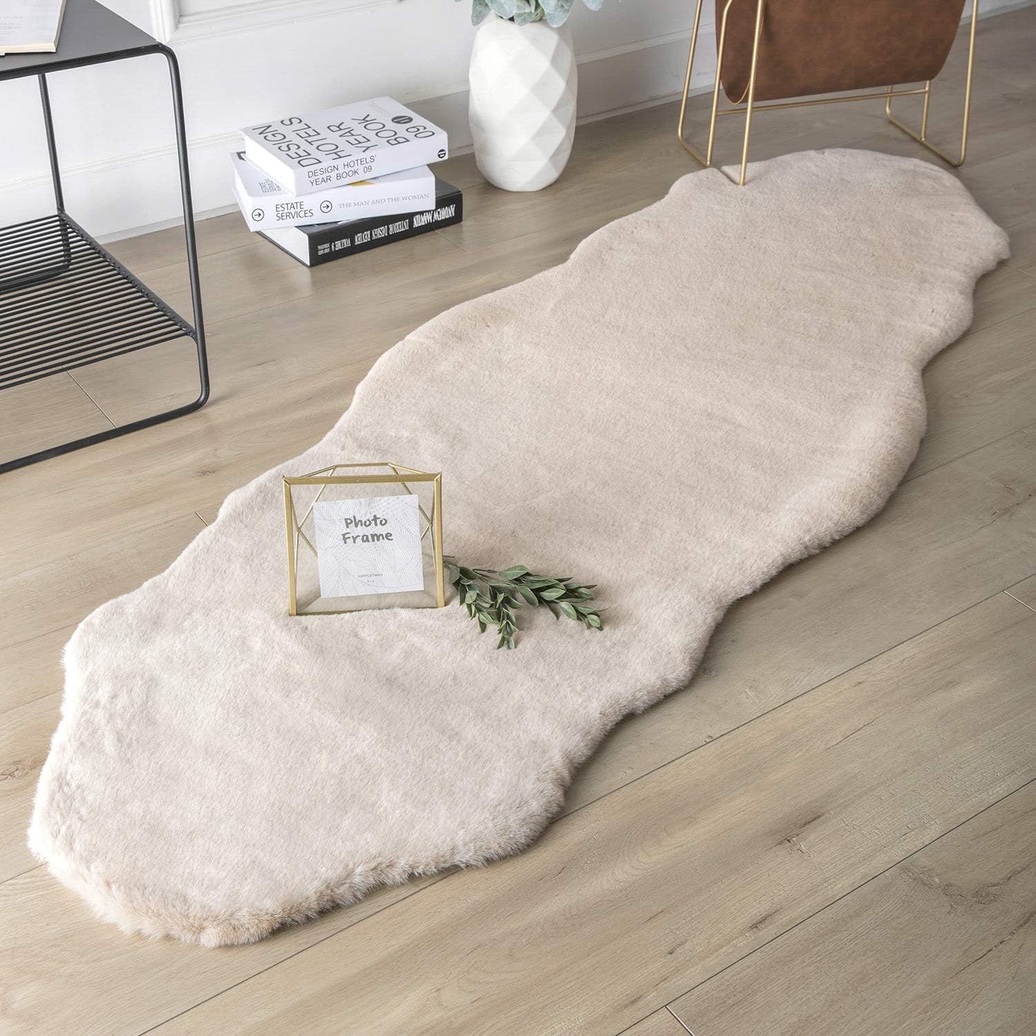 Ashler Faux Fur Rug, Ultra Soft Faux Rabbit Fur, Beige Area Rugs, 2 x 6 Feet, Machine Washable Nursery Decor Throw Rugs for Bedroom, Kids Room, Living Room