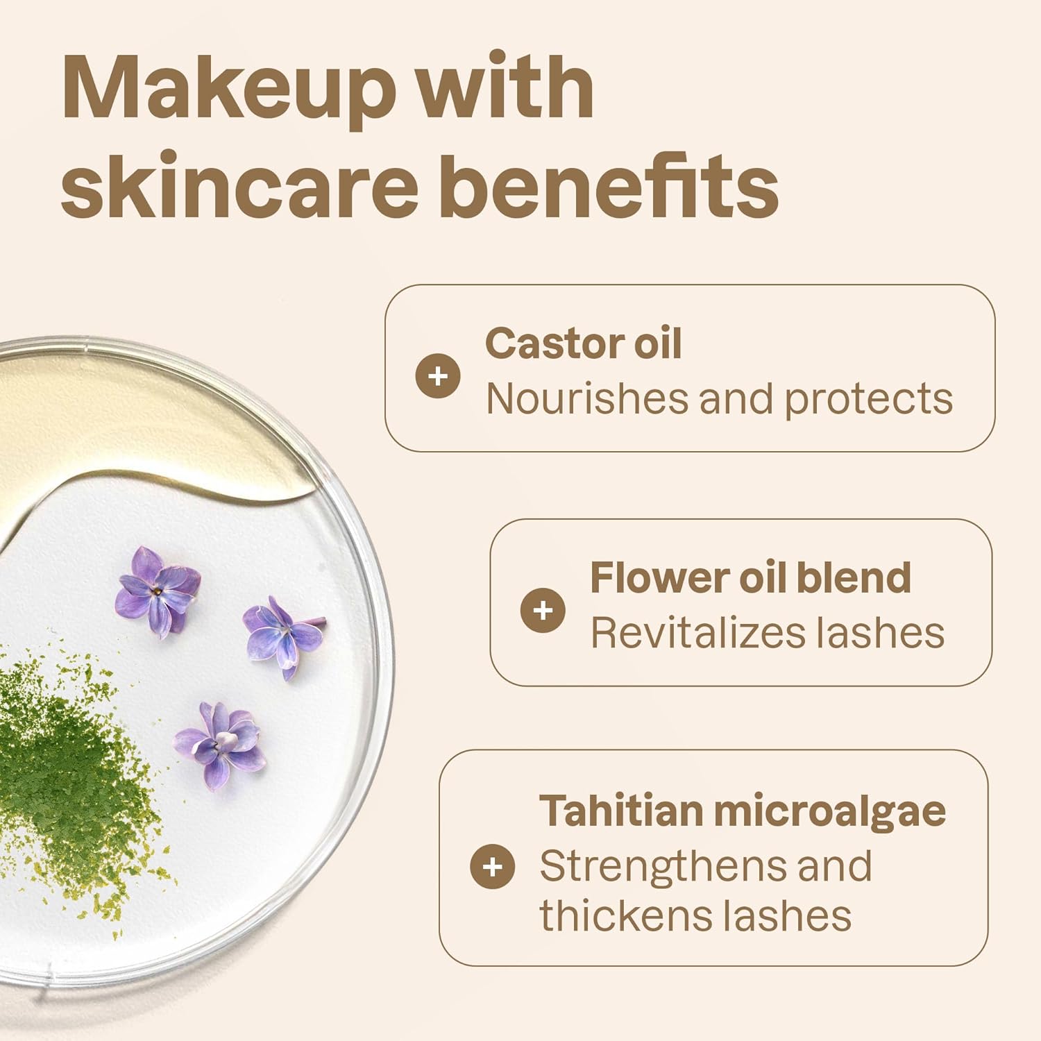 NATURAL ORIGIN INGREDIENTS: Made with +97,8%* ingredients of natural origin such as Tahitian microalgae to increase lash density, a blend of flower oils omega-6-rich which revitalizes them, and castor oil for its nourishing side