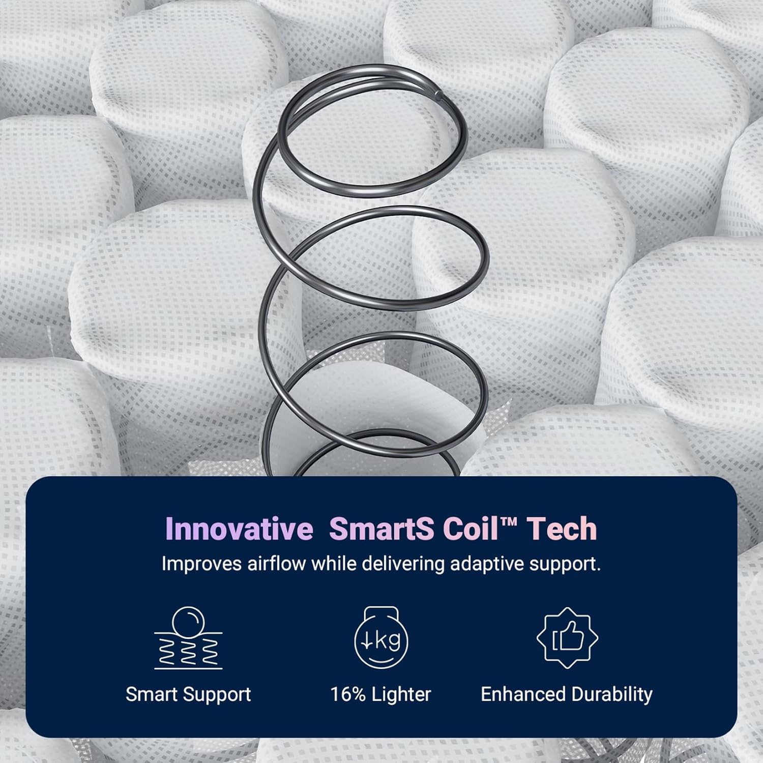 【SmartS Coil Support System】 – Built with individually wrapped SmartS Coil springs, this twin mattress adapts to your body shape, offering balanced support and helping reduce pressure on shoulders, hips, and back.