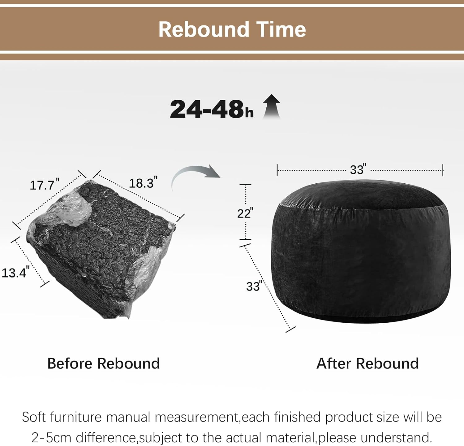 PERFECT FOR MANY OCCASIONS: The size is 33 ” * 33 ” * 22 ” bean bag chairs for adults and teens, suitable for any room, you can push it to any place you want, lounge, living room, bedroom, study, basement, and more. It is the best place to lie down and rest when tired.