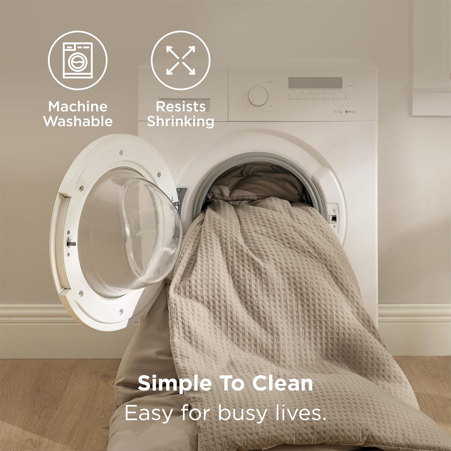 PERFECT WARMTH BALANCE: Experience lightweight warmth that’s never too hot or thick. This waffle comforter provides ideal temperature regulation with a pleasant weight that feels cozy without overheating, perfect for hot sleepers and transitioning between seasons