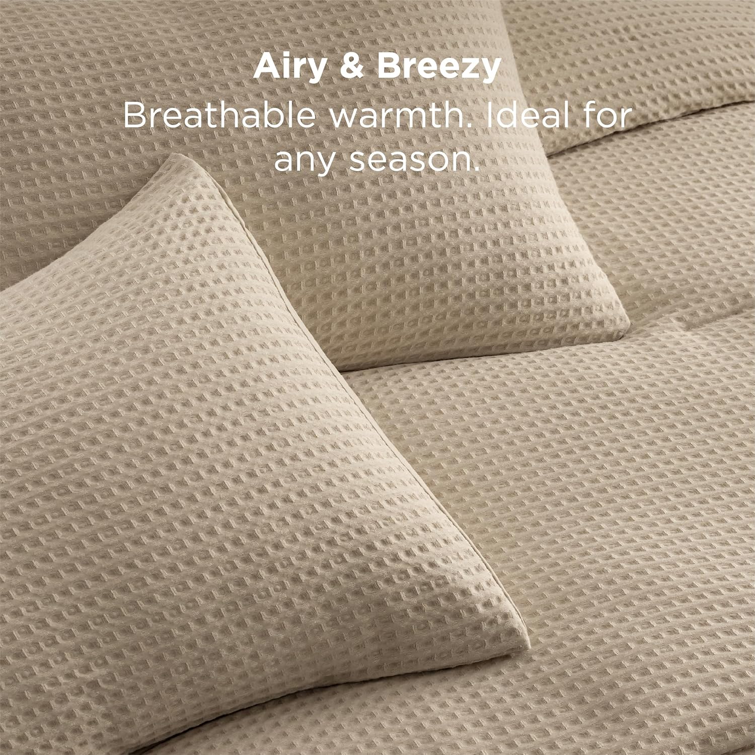 ULTRA-SOFT COMFORT: This waffle weave comforter delivers the perfect balance of softness and warmth with premium prewashed microfiber. The plush texture feels wonderful against your skin while maintaining a firm thread count for durability and year-round coziness in bedrooms, dorms, or guest rooms. We recommend washing before first use to make it fluffier and bring out the waffle pattern more clearly
