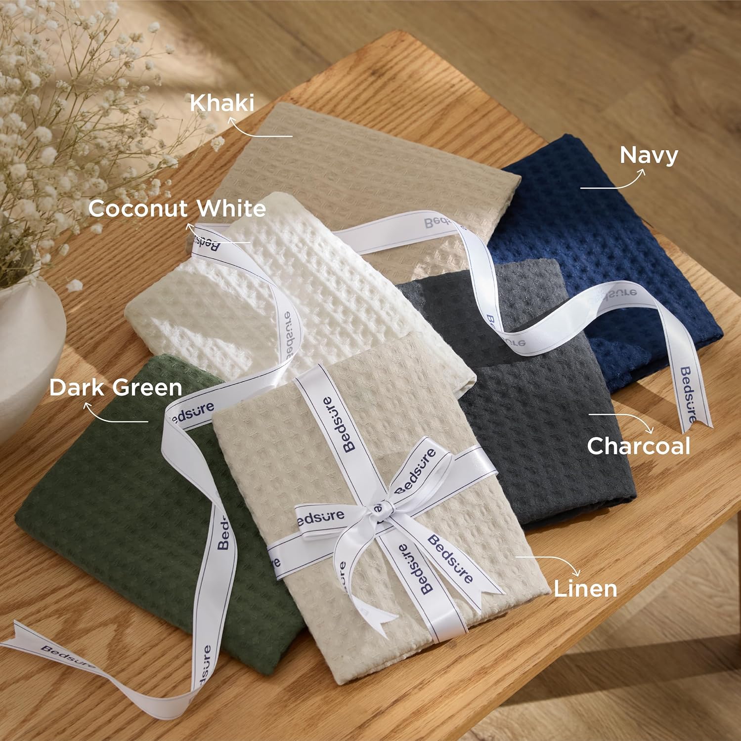 VINTAGE WAFFLE DESIGN: The classic waffle weave pattern adds elegant texture and visual interest to any bedroom. This timeless design blends seamlessly with various decor styles while the khaki color easily pairs with both solid and printed bedsheets