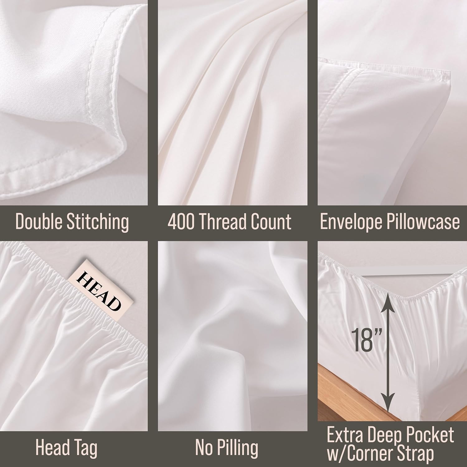 REDEFINE YOUR LIFESTYLE- With a 400 thread count, the superior quality of these viscose derived from bamboo sheets are a dream to sleep on, getting softer with every wash. The 18″ extra deep pocket fitted sheet will fit even the most plush pillow top mattresses.