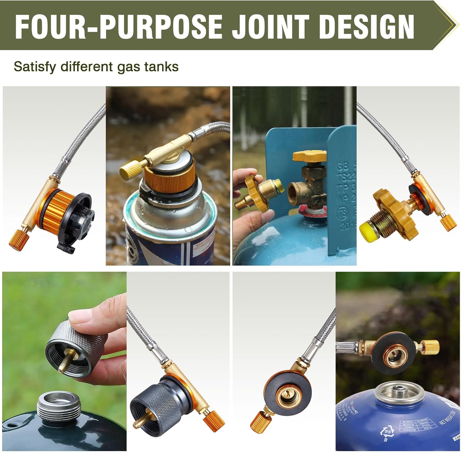 【All-in-One Compatibility】Equipped with piezo ignition, flame control, honeycomb mesh, and windshield design for fast ignition and fuel efficiency. Includes 3 adapters compatible with 1 lb, 20 lb, and other common propane tanks—ideal for all cooking scenarios.