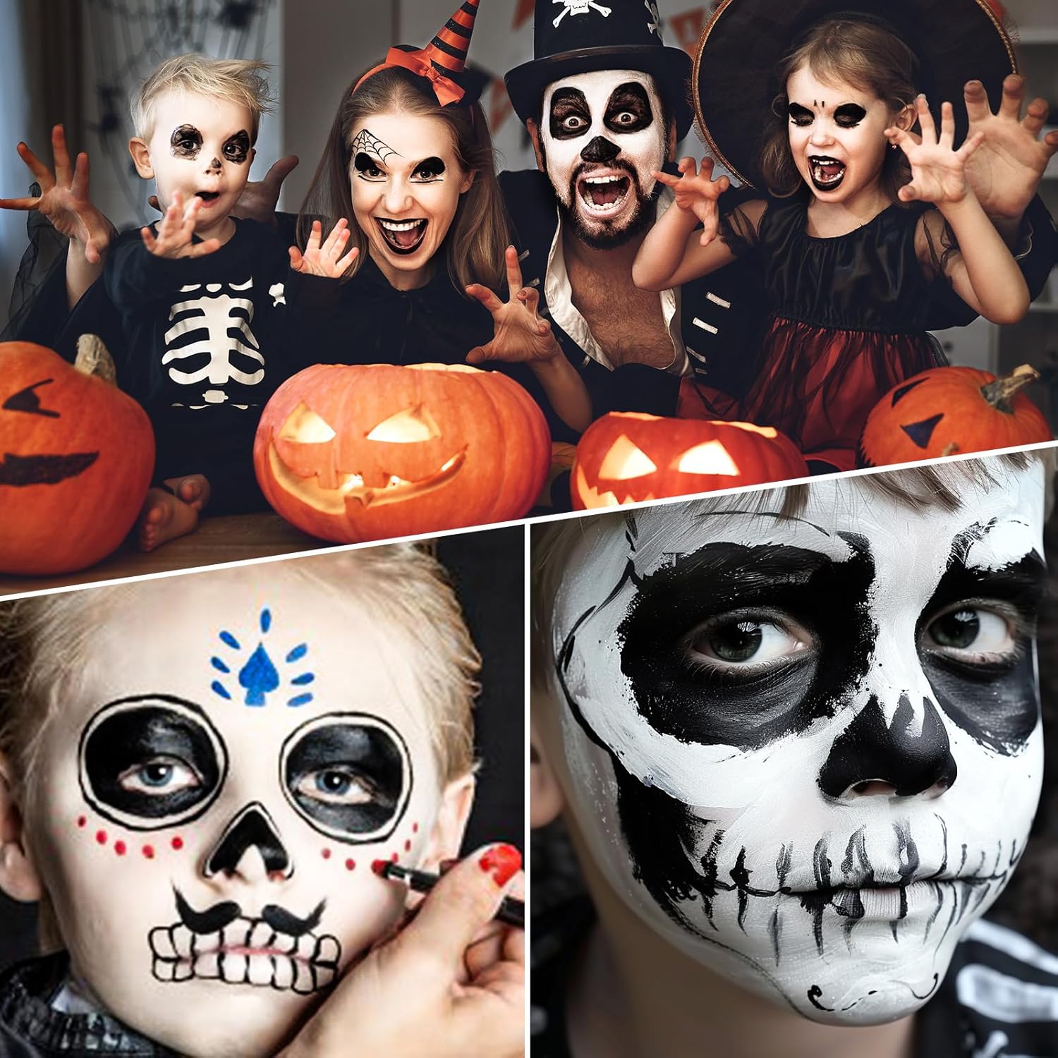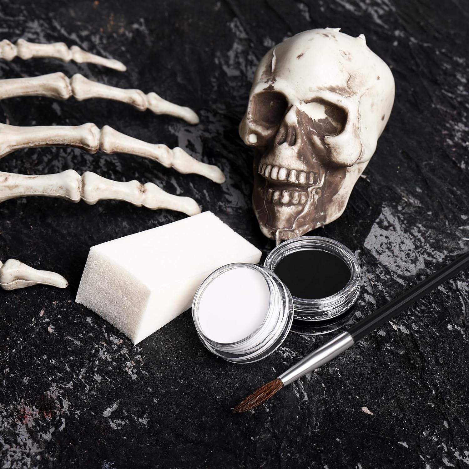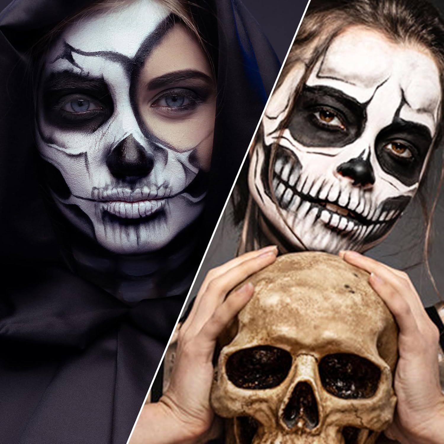 Black and White Face Paint Skeleton Makeup Kit Halloween Character Set for Kids Adults, Safe Non-Toxic Skull/Ghoul Face Painting Kit for Stage, Costume Parties, Dress Up Cosplay & Special FX Make-Up