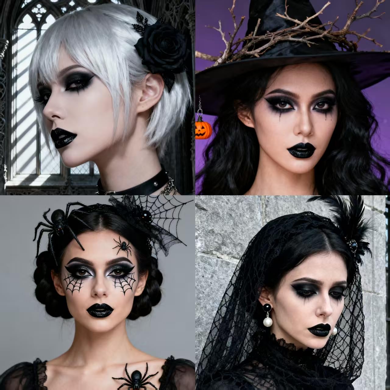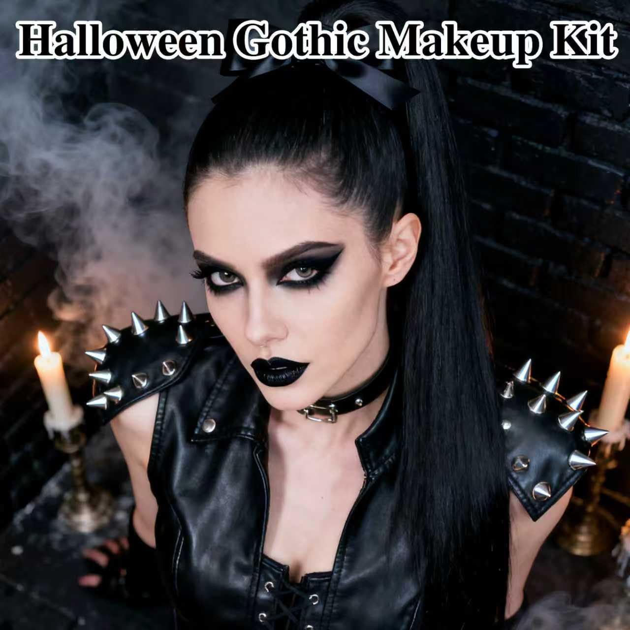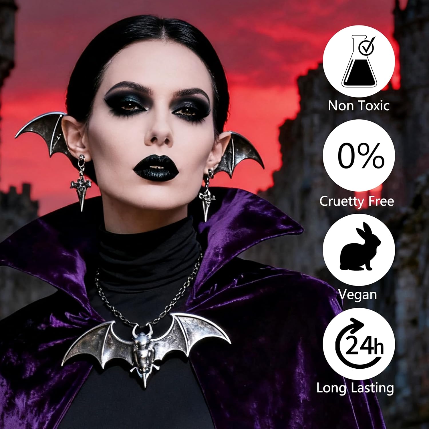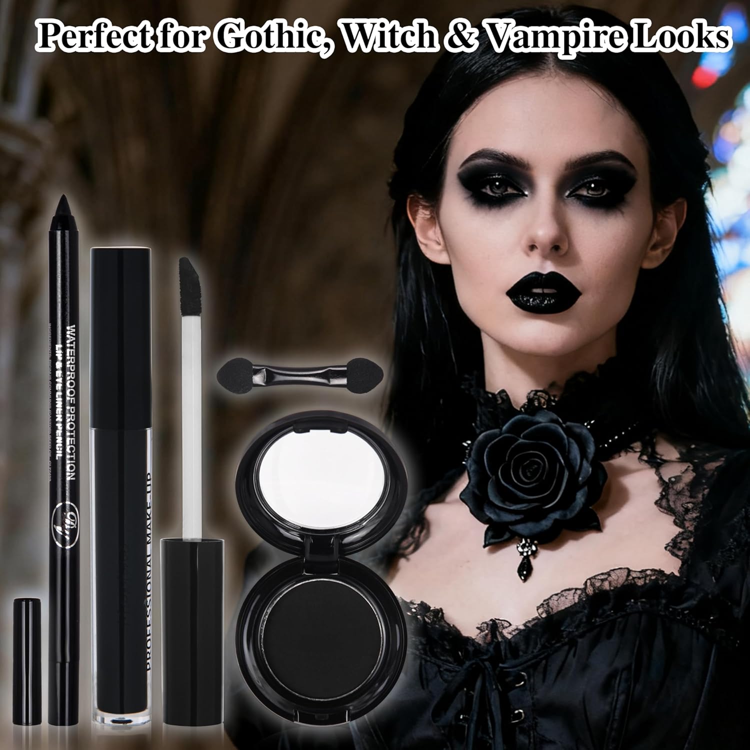 Black Eyeshadow Palette Liquid Lipstick Eyeliner Set with Mini Brush, Smokey Eye Shadow Black Lip Gloss lip liner Set, Smudge Proof Long-lasting, Suitable for Halloween Cosplay Goth Witch Makeup