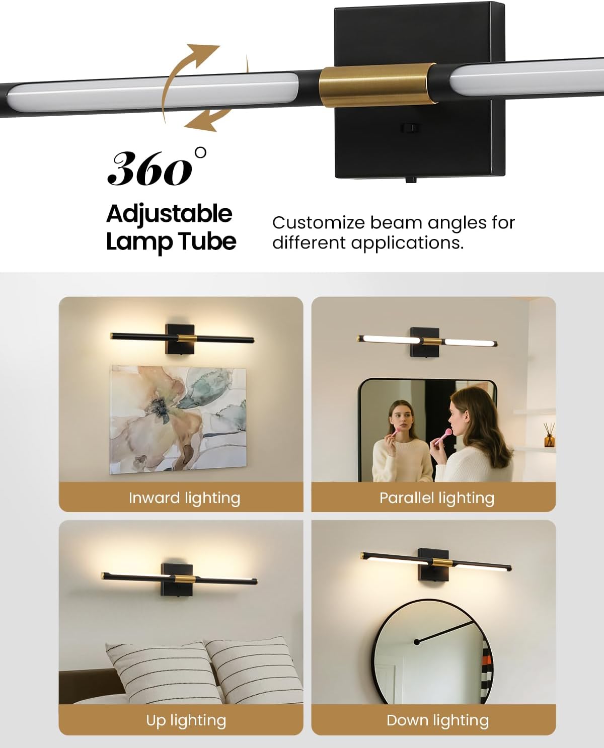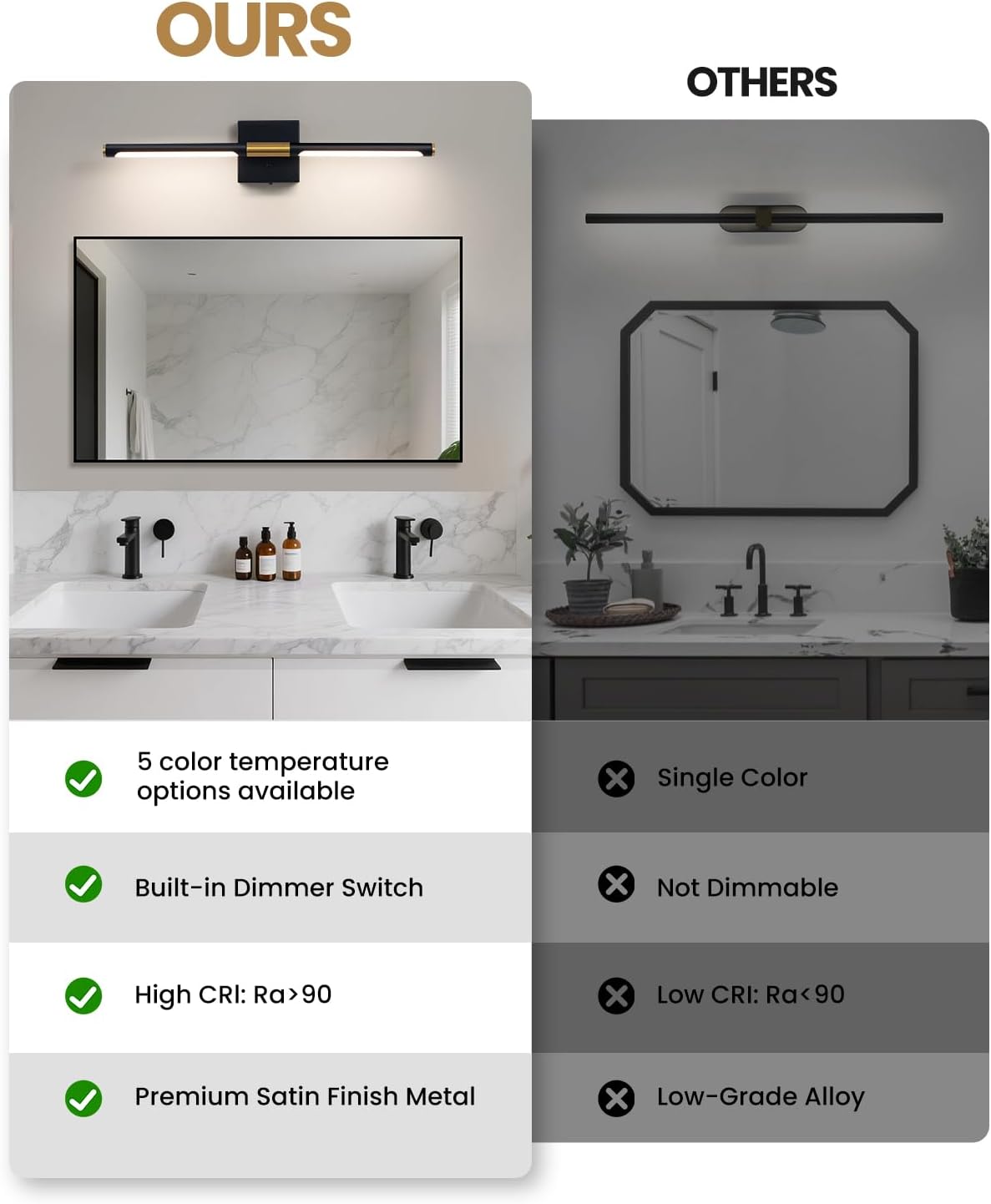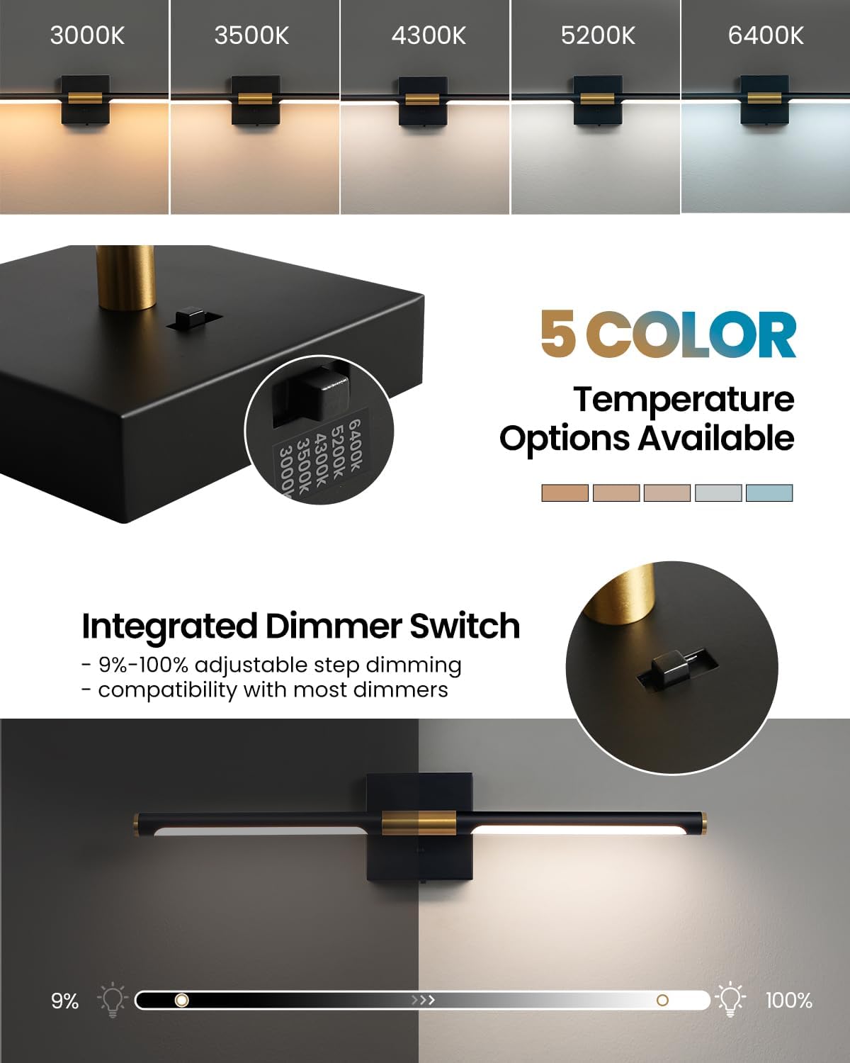 Black Gold Vanity Light Fixtures for Bathroom Over Mirror 24 inch LED Bath Sconces IP44 5CCT Adjustable Morden Picture Lights for Paintings (Built-in Dimmer)