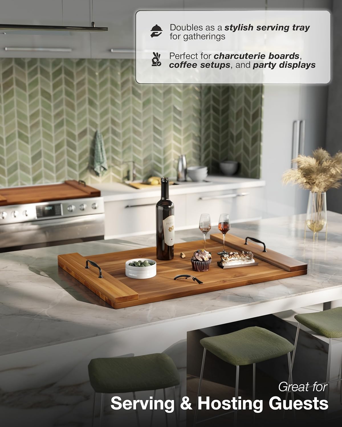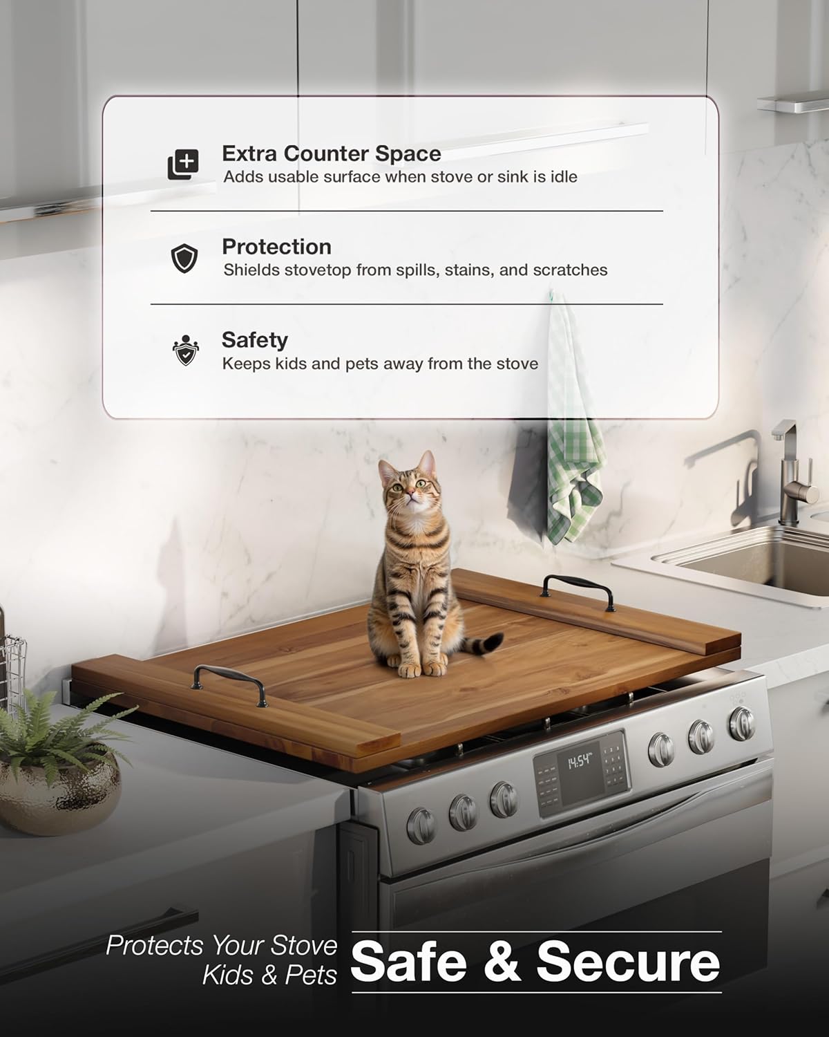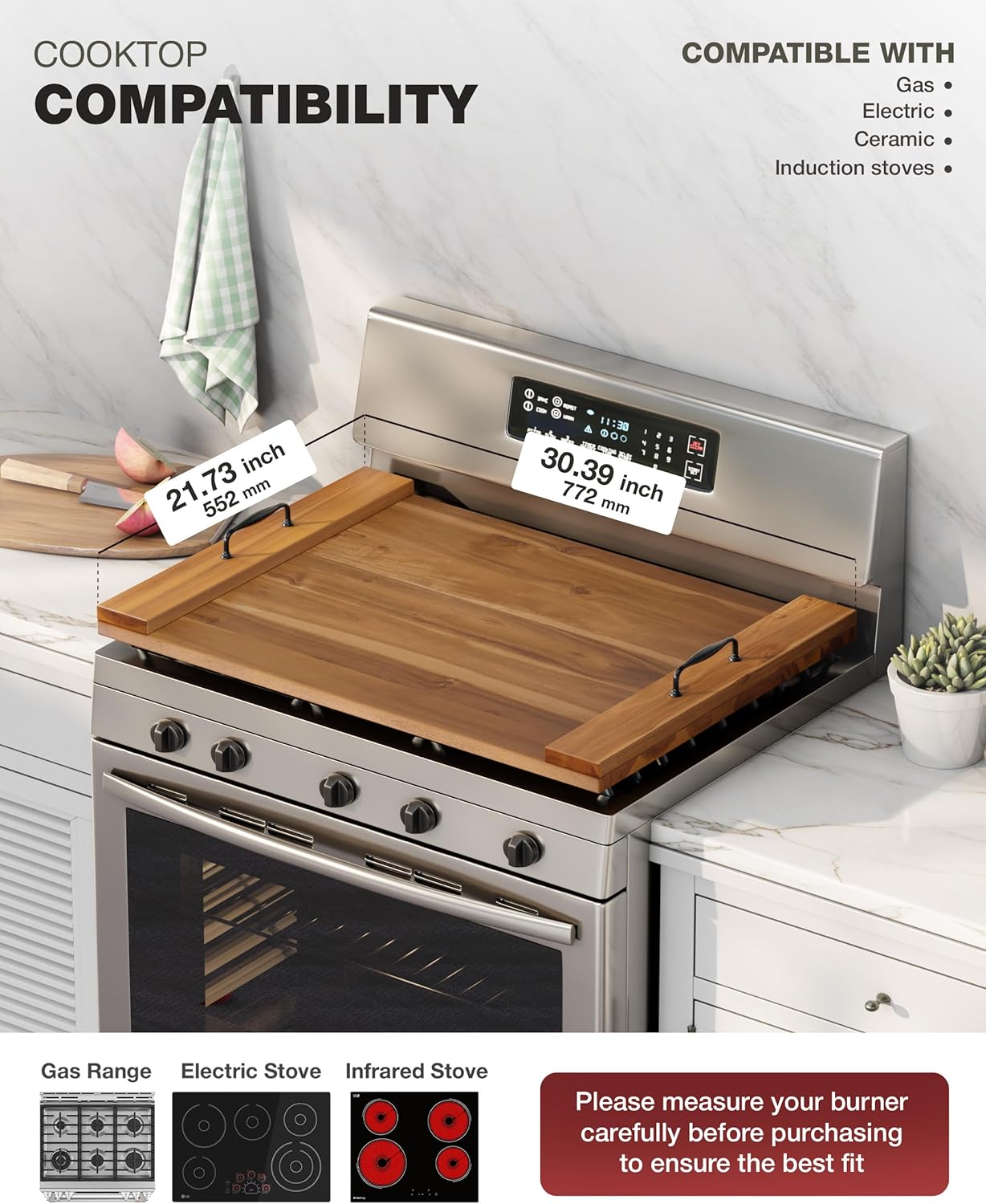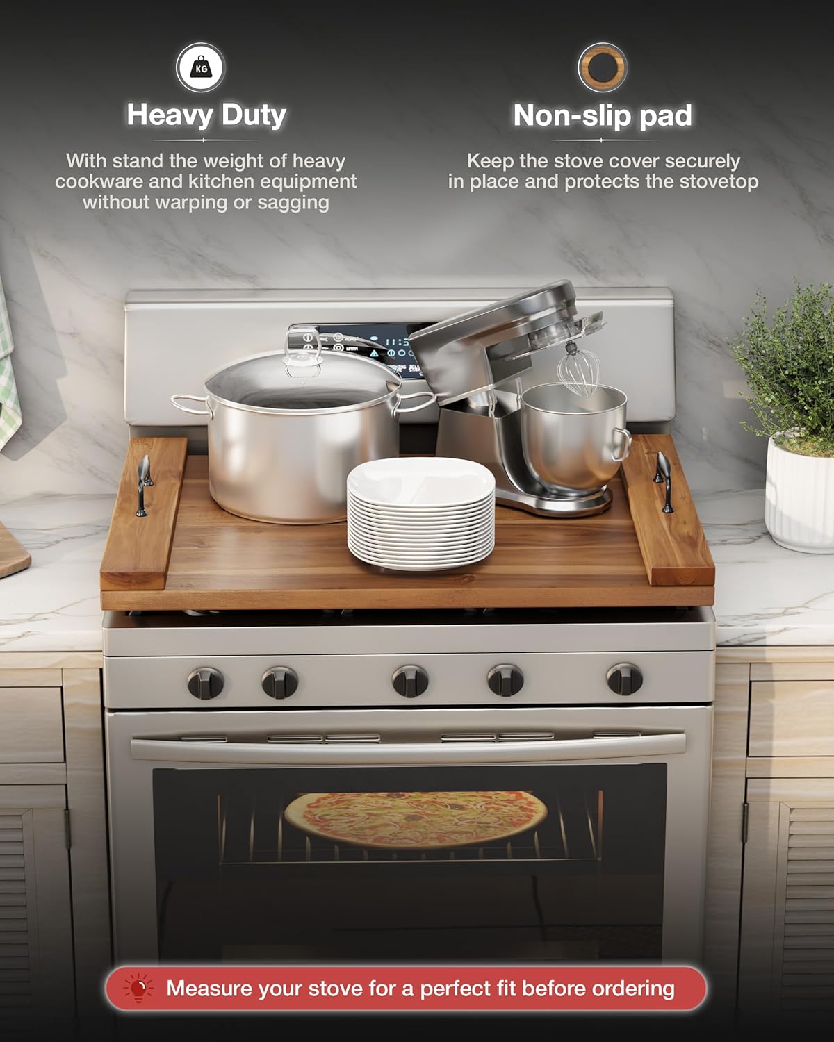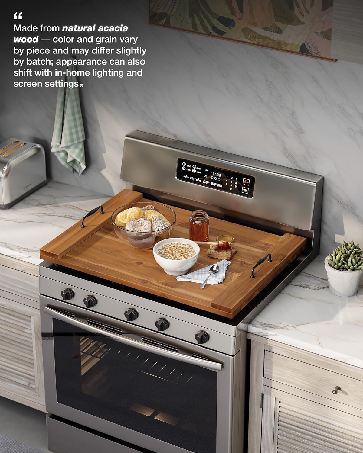 BLUEWEST Noodle Board Stove Cover, Acacia Wood Stove Top Board for Gas Burners and Electric Stove, Extra Thick Wooden RV Stovetop/Sink Cover – Tray for Kitchen Counter Space