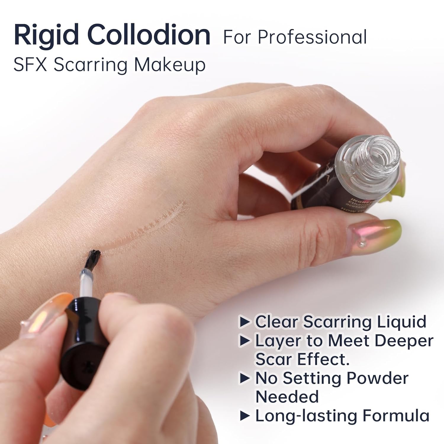 【PRO RIGID COLLODION KIT】This combo kit(8 ml/0.27fl.oz rigid collodion with 30ml/1.01 fl.oz Remover)can take your costume makeup to next level! Easy to create simulated scars and customization looks for your needs. And it can give you long lasting SFX looks and realistic scar creation into your cosplay, special effects makeup on Halloween or any festivities.
