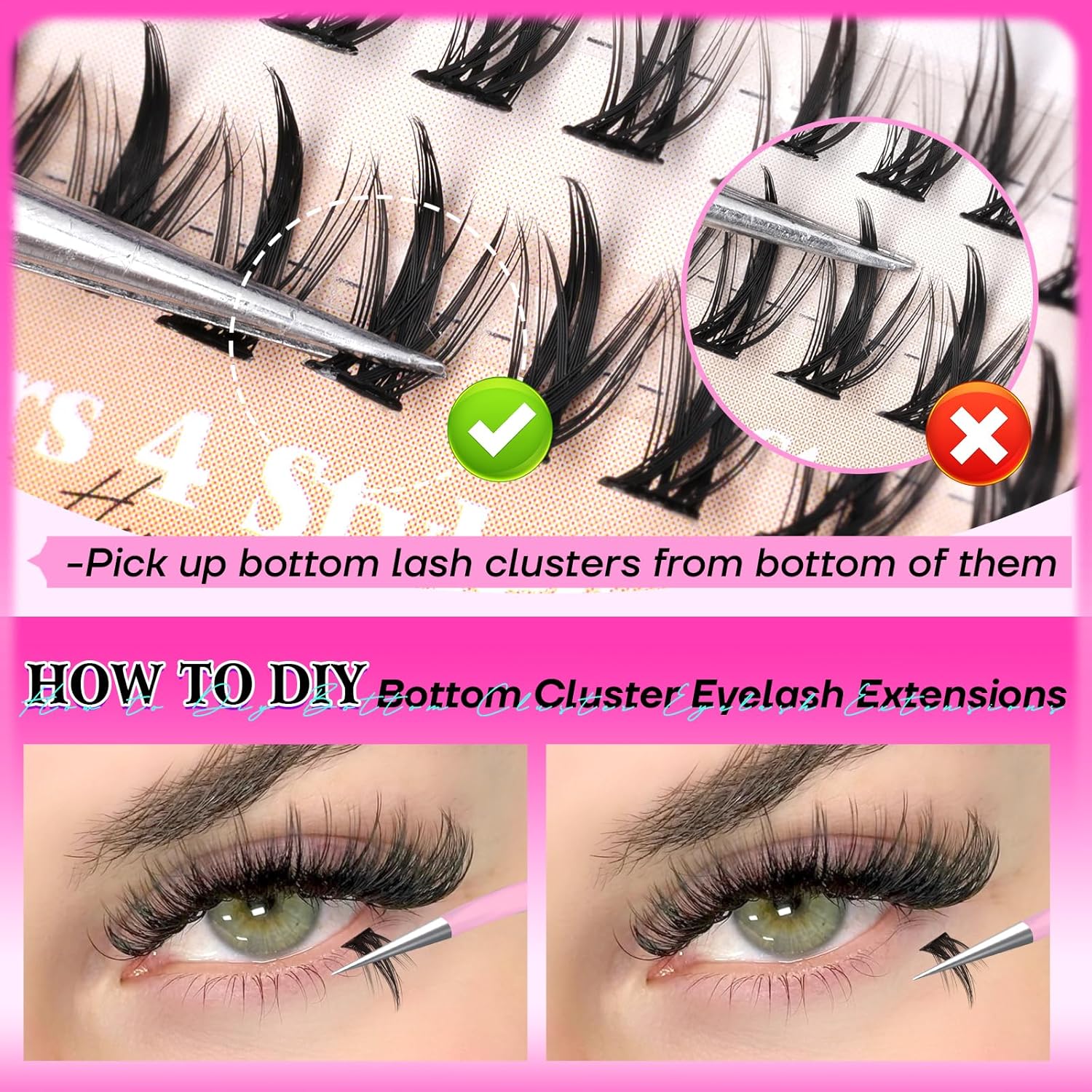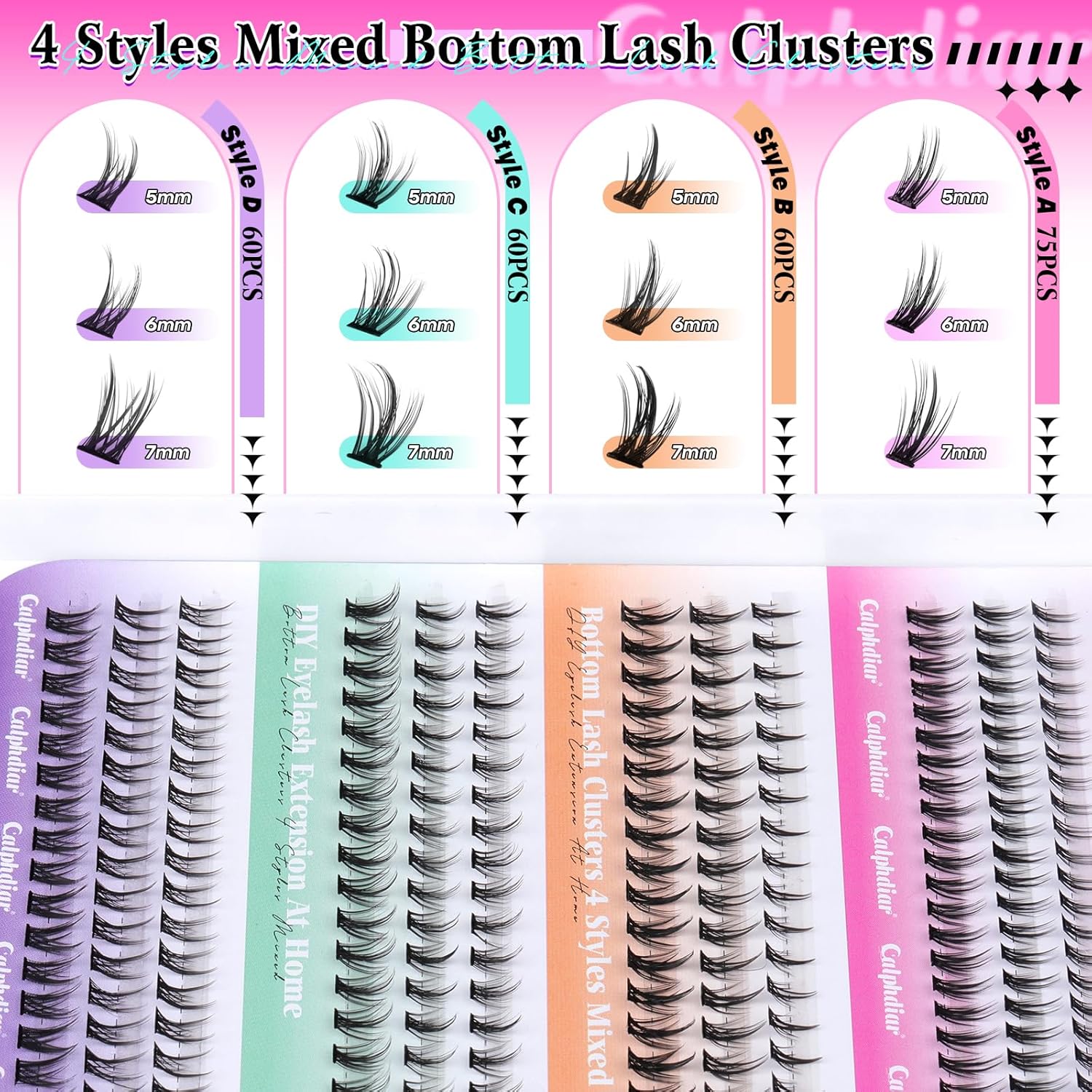 Bottom Lash Clusters DIY Eyelash Extensions 4 Styles Lower Lashes Wispy Bottom Individual Lashes 5-7mm Natural Thin Band Eyelash Clusters 225pcs for Bottom Lash Extension by calphdiar