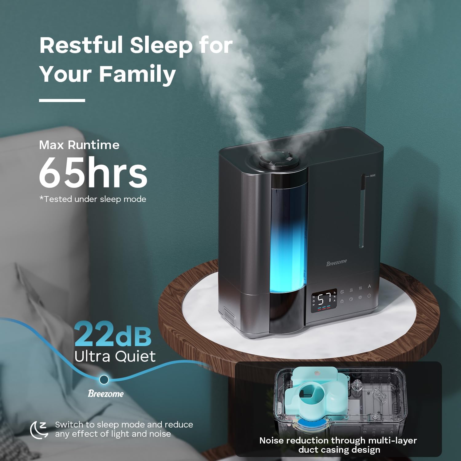 Whisper-Quiet Operation: Using advanced ultrasonic technology, our humidifier for bedroom operates at just 22dB in sleep mode. All lights can turn off for total darkness, and the auto shut-off ensures safety by preventing dry burns. Ideal for light sleepers, babies, and home offices.