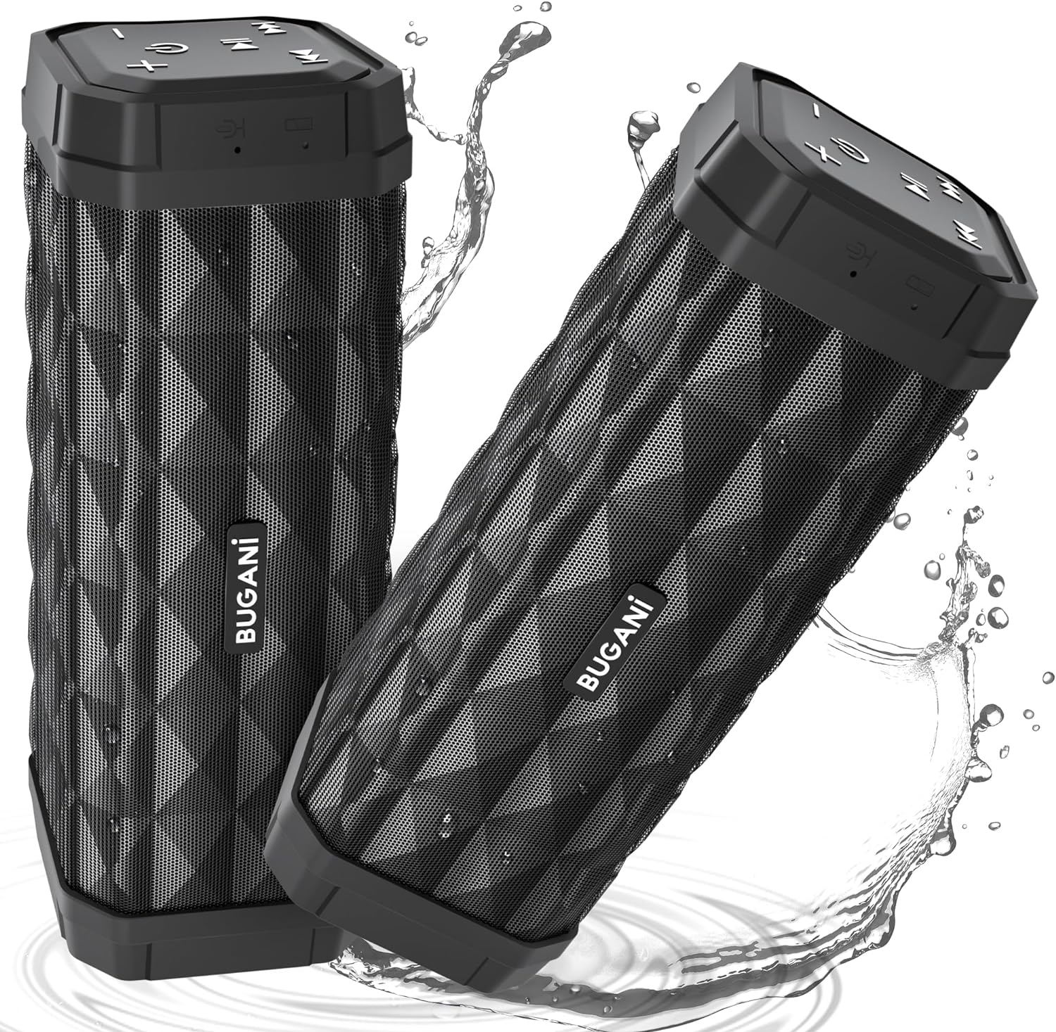 BUGANI Bluetooth Speakers, Portable Speakers, 100FT Range Bluetooth 5.0 TWS Pairing,IPX5 Waterproof Speakers Built-in Mic, 24H Play Type-C,Suitable for Outdoor Speakers at Travel/Party(2 Pack)