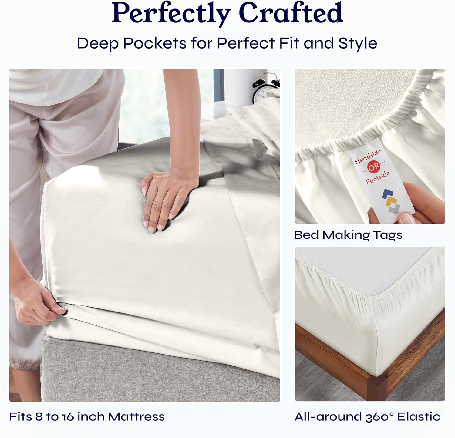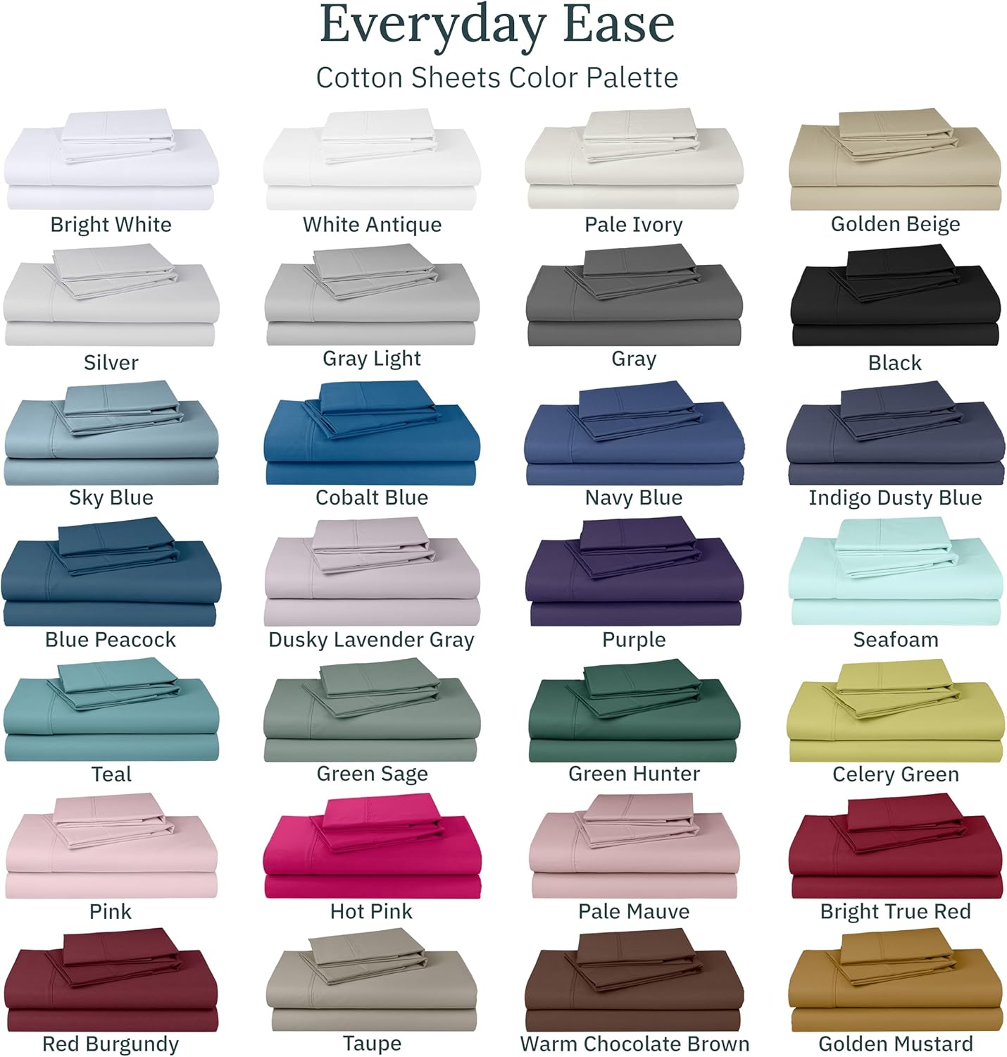 WELL-FITTING: Our 4-piece cotton sheets full set includes 1 top sheet, 1 bottom fitted sheet with all-around elastic that fits mattresses 8 to 16 inches deep, and 2 standard size pillowcases. The high-quality elastic of these cotton deep pocket sheets is designed for a secure fit, and headside/footside indicators make bed-making a breeze.