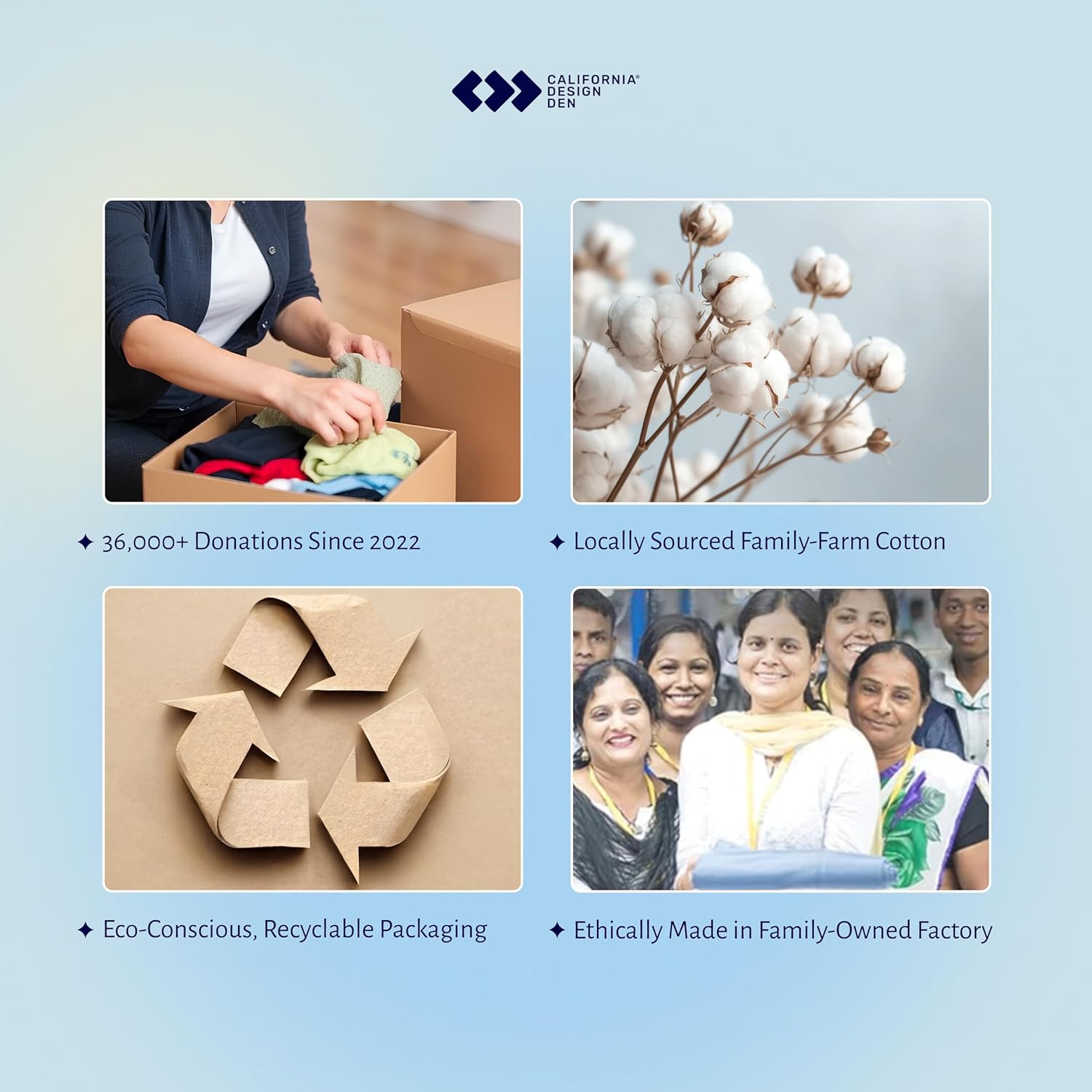 OUR COMMITMENT: We prioritize comfort, community, and sustainability. Since 2022, we’ve donated over 36,000 bedding items to US charities and removed plastic from our packaging. Sheets are crafted in our family‑owned factory in India with care and quality‑checked—thread count may vary by ±5% due to standard manufacturing limits. Thoughtfully crafted for everyday comfort.
