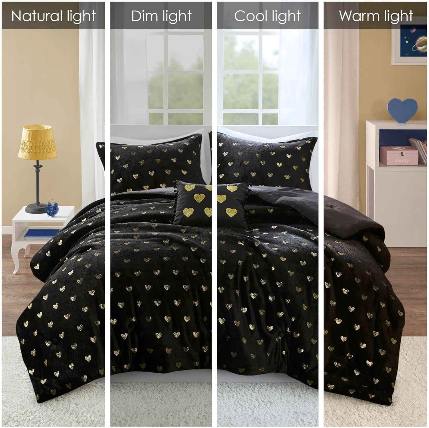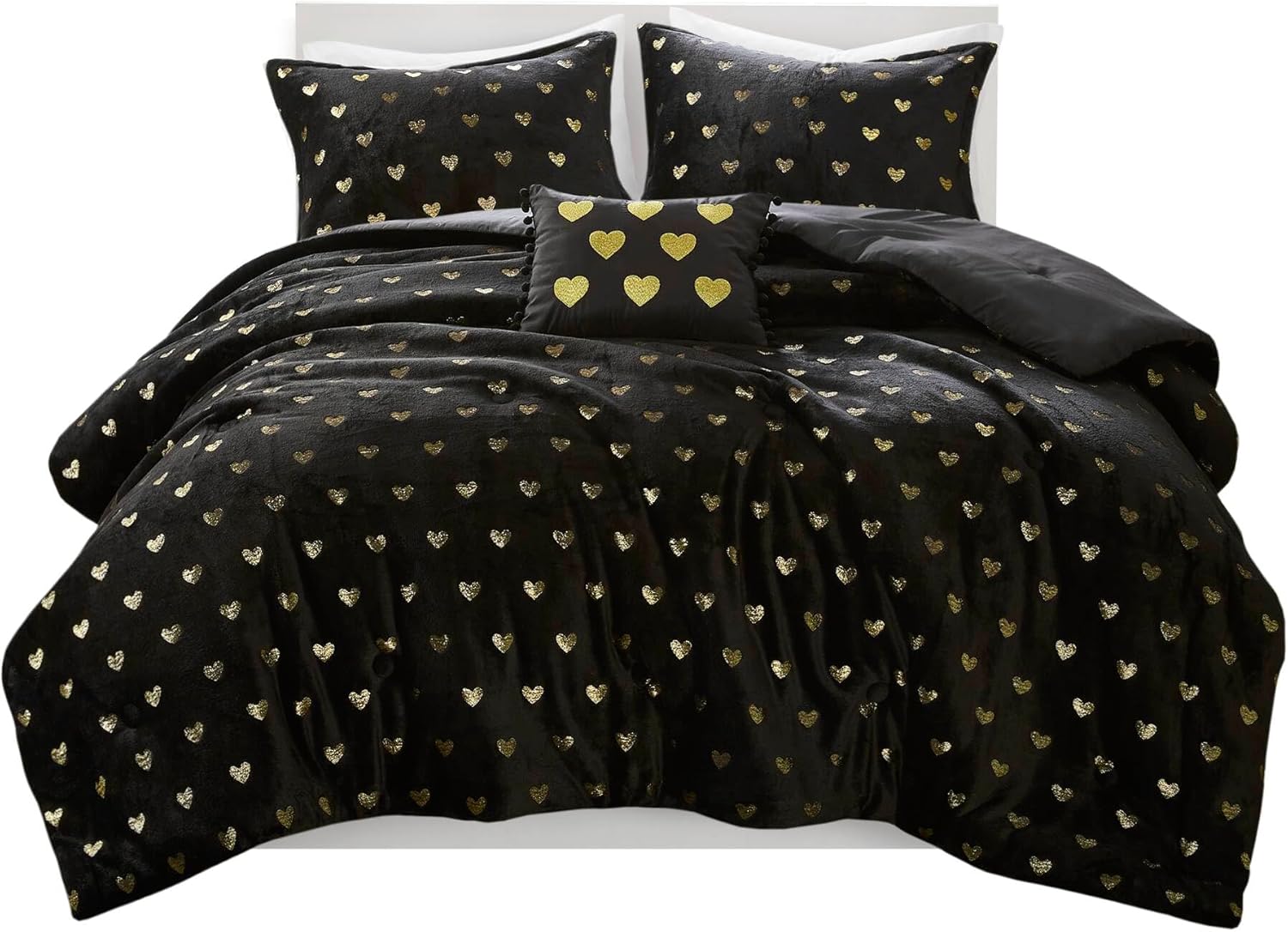 Ultra soft microlight plush comforter set with a microfiber reverse and poly filling