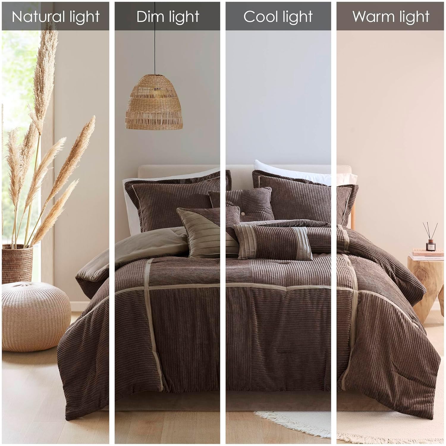 CHARMMA 7 Piece Micro Corduroy Comforter Set 90.00×90.00×1.50in