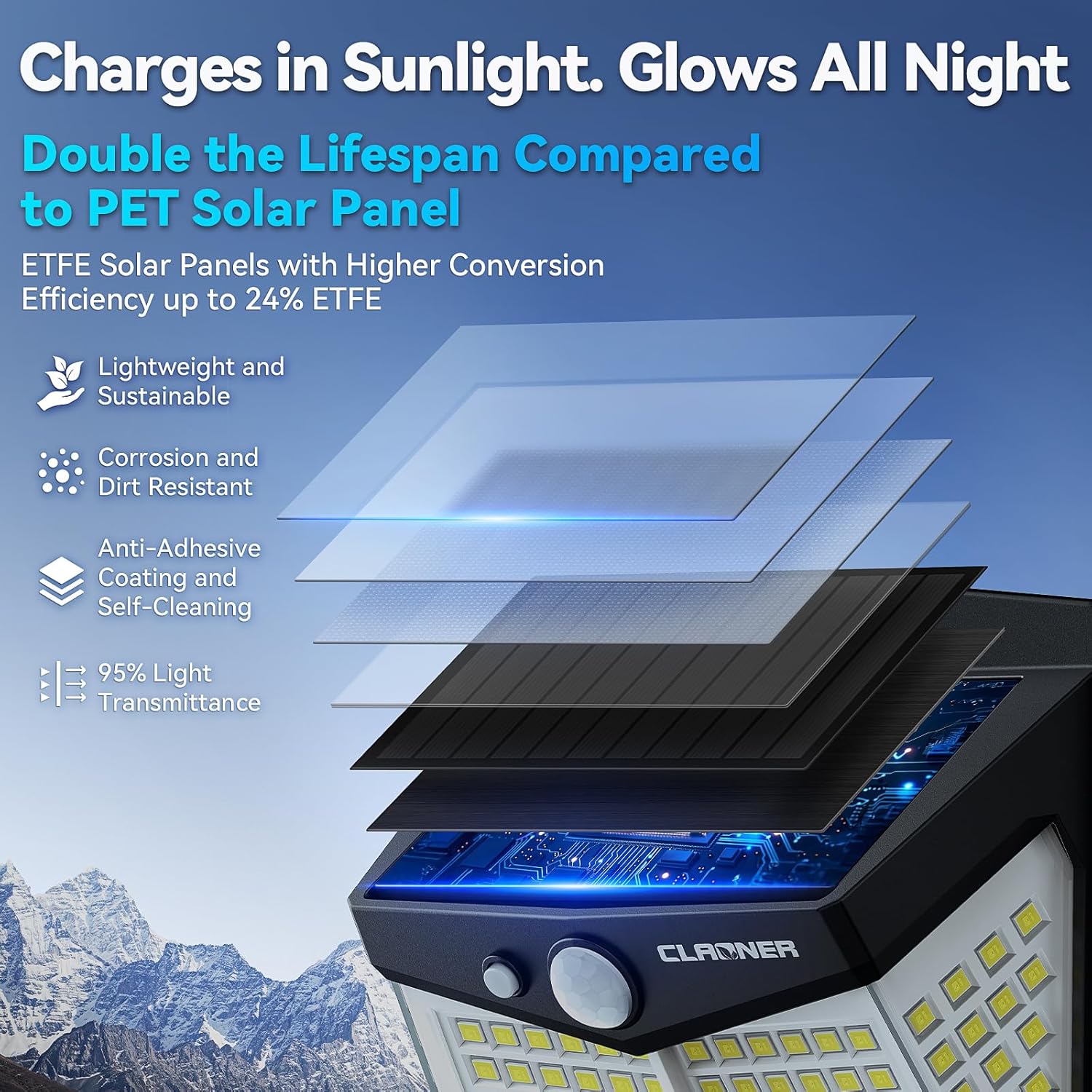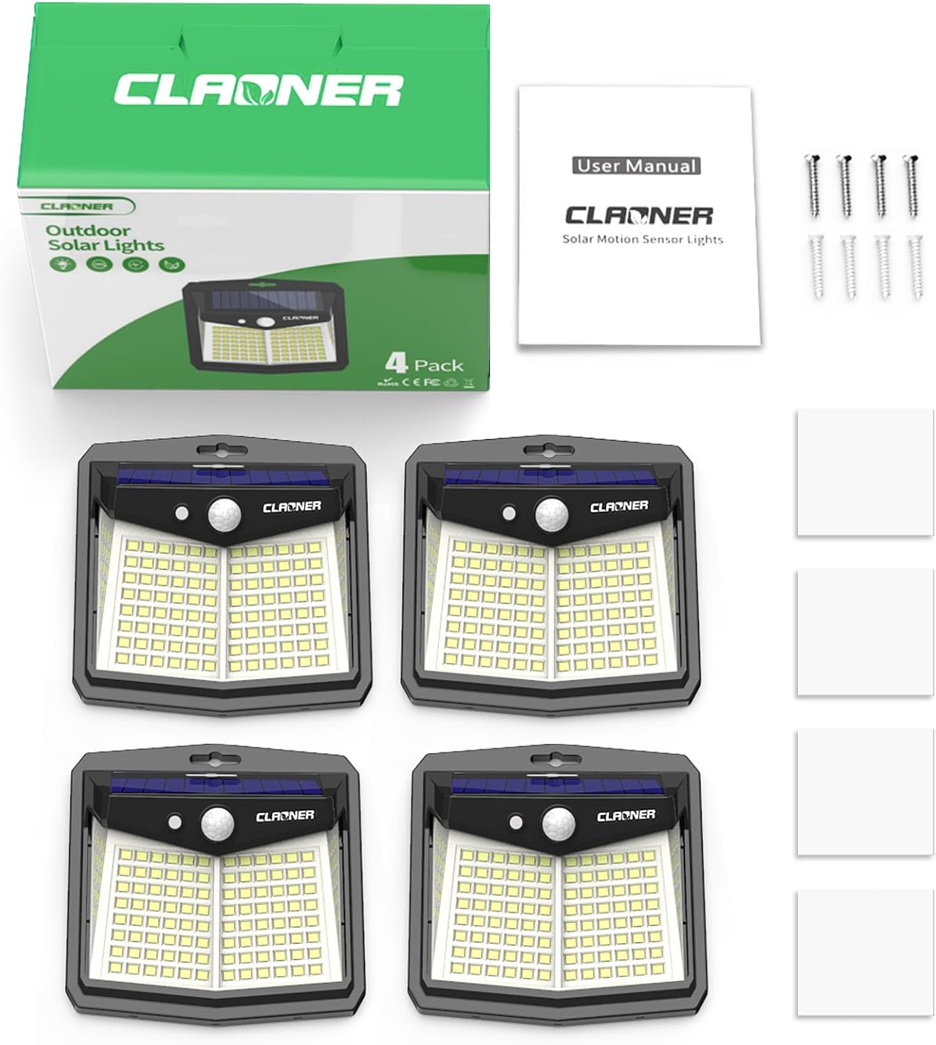 CLAONER Solar Lights Outdoor, [128 LED/4 Packs] Solar Motion Sensor Lights 3 Working Modes Outdoor Lights with 270° Wide Angle Wireless IP65 Waterproof Security Light for Fence Patio, Cold White