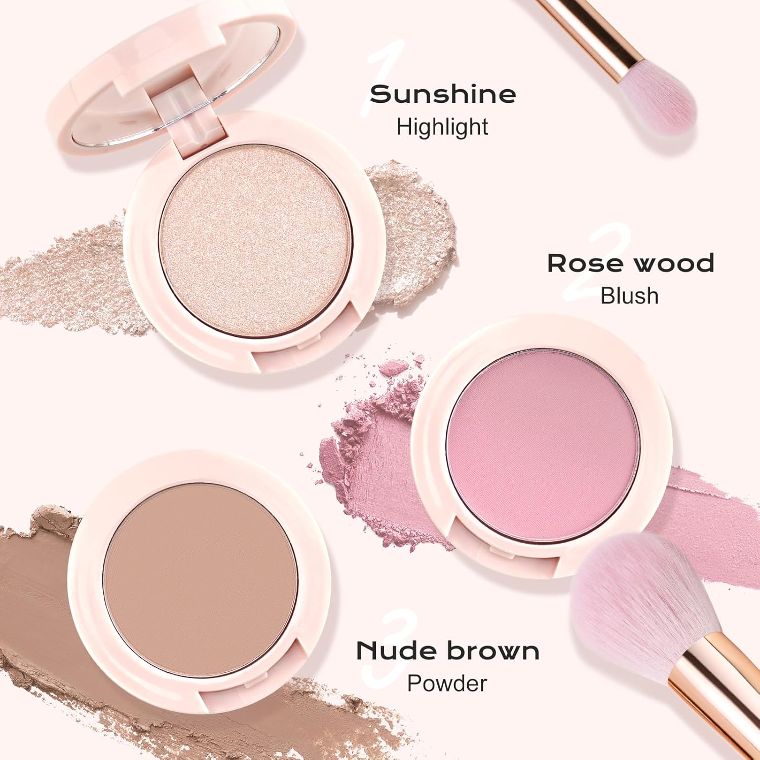 Beginner-Friendly, Blendable Texture: This travel makeup kit stack of contour powder, blush, and highlighter designed with your skin tone in mind; with 3 colors complimentary hues, look your best from anywhere in the world.