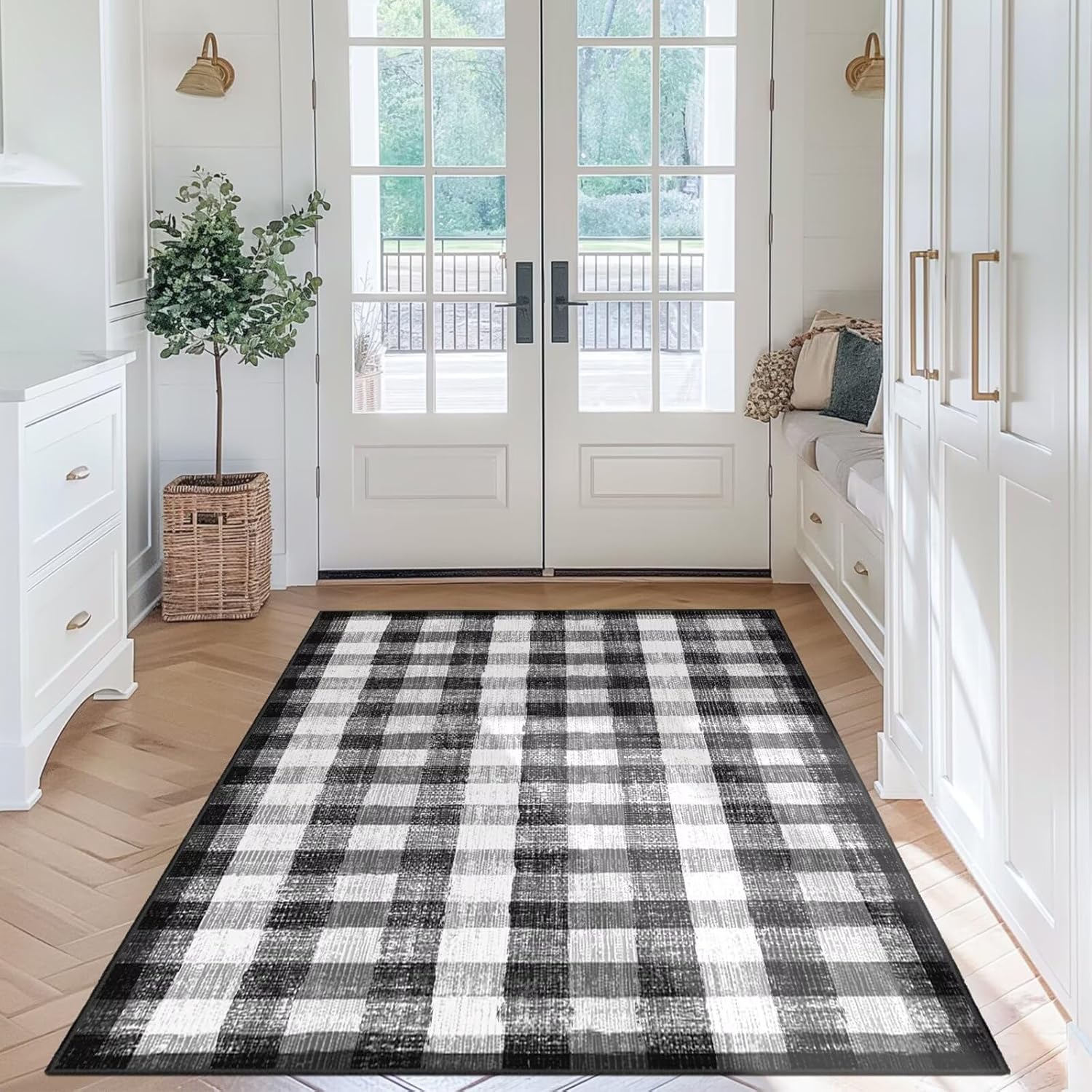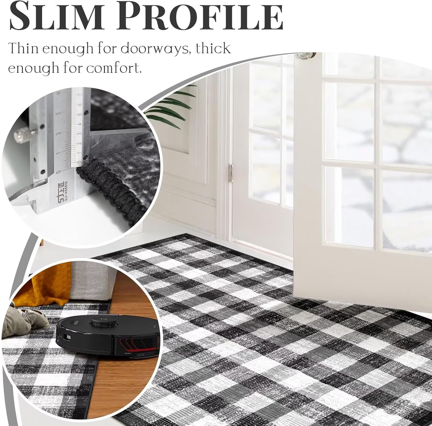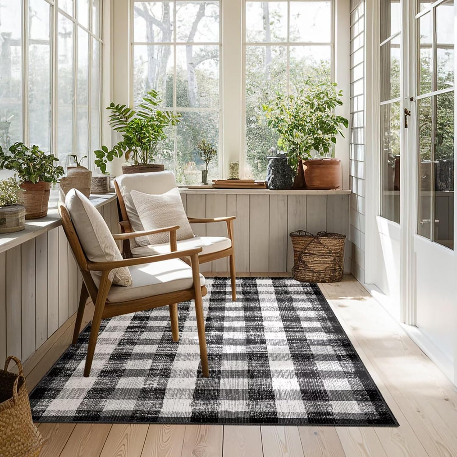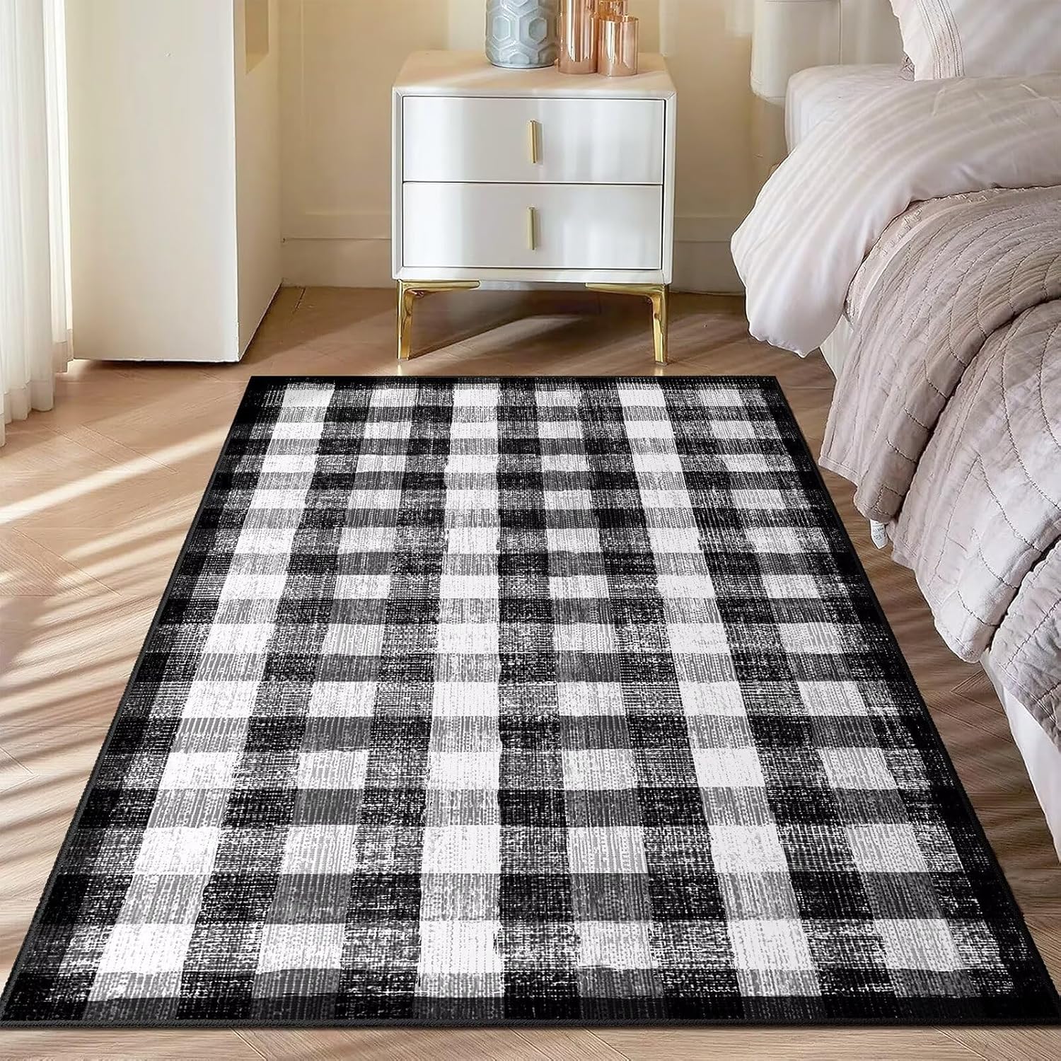 COLORPAPA Checkered Area Rug 3×5, Washable Rugs for Living Room, Modern Neutral Non Slip Indoor Carpet for Bedroom Office Patio Dining Room (Black and White)