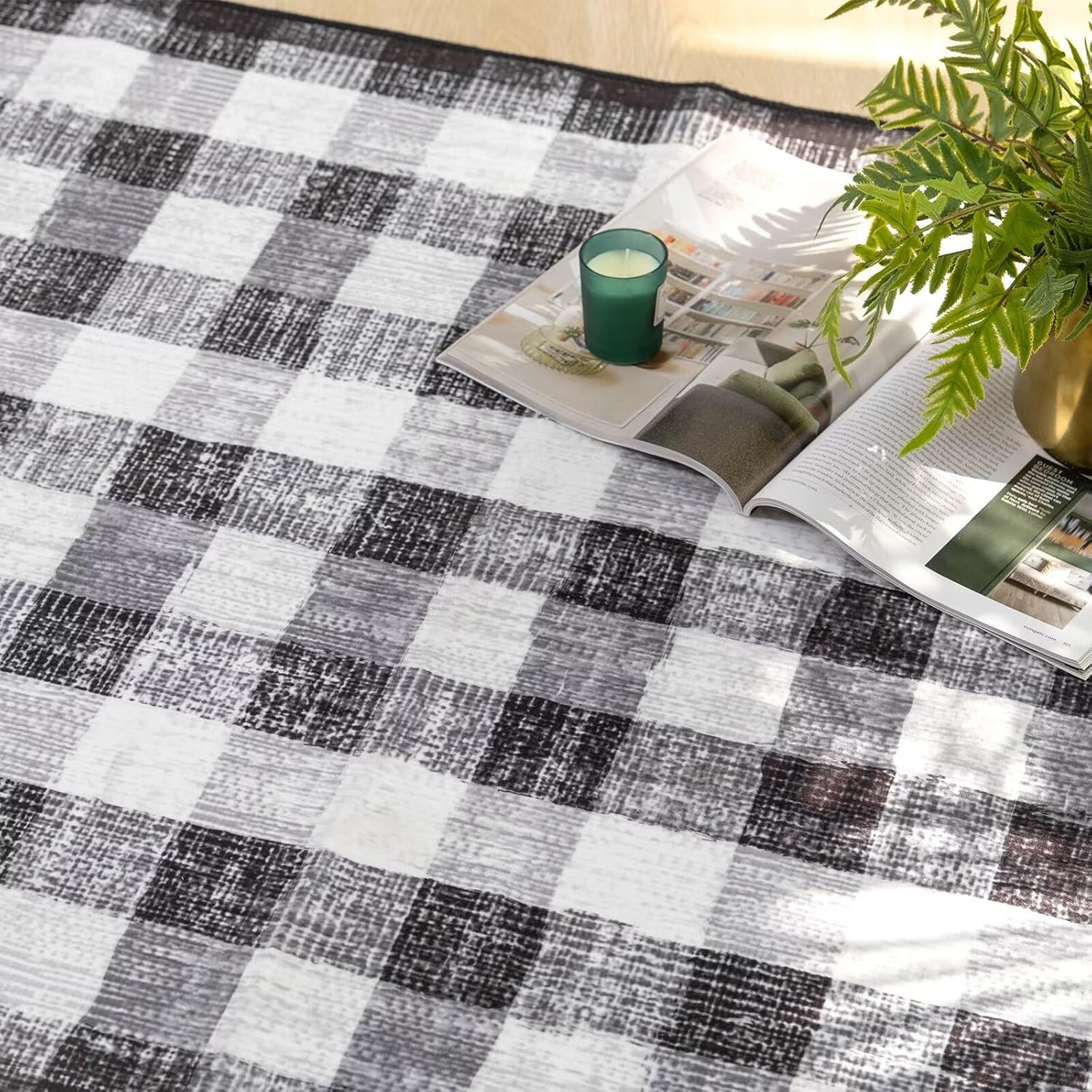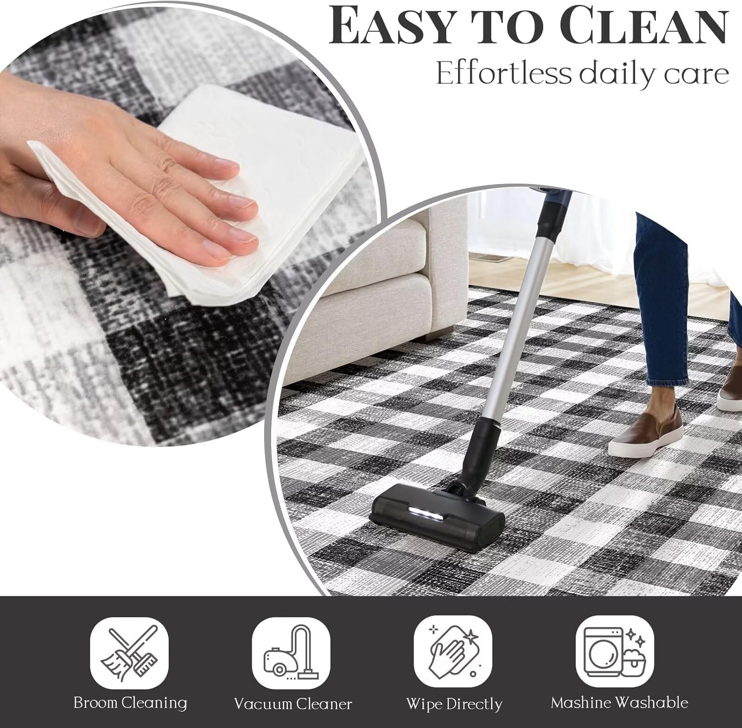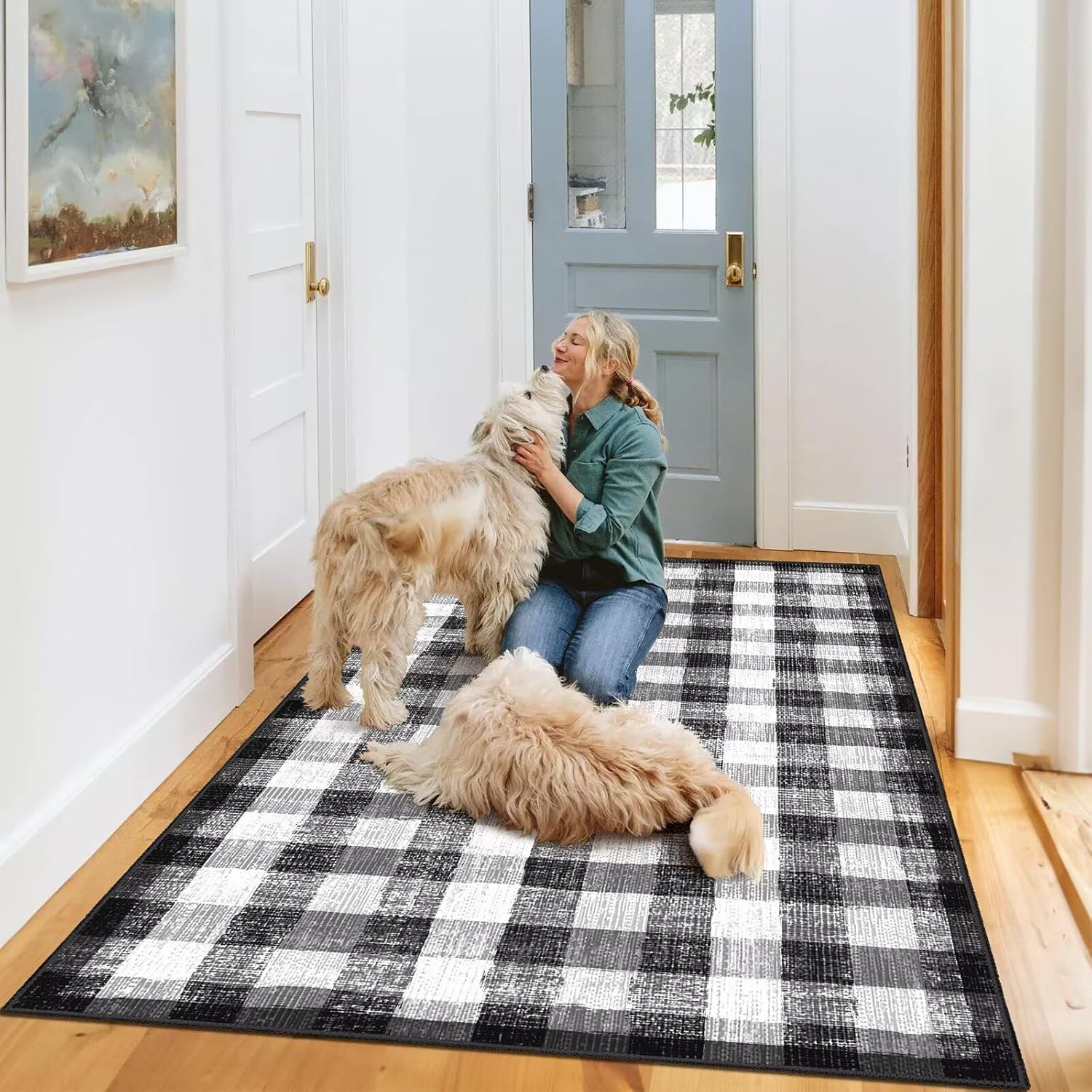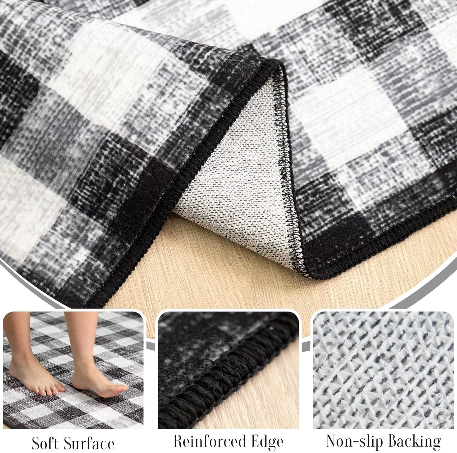 COLORPAPA Checkered Area Rug 3×5, Washable Rugs for Living Room, Modern Neutral Non Slip Indoor Carpet for Bedroom Office Patio Dining Room (Black and White)