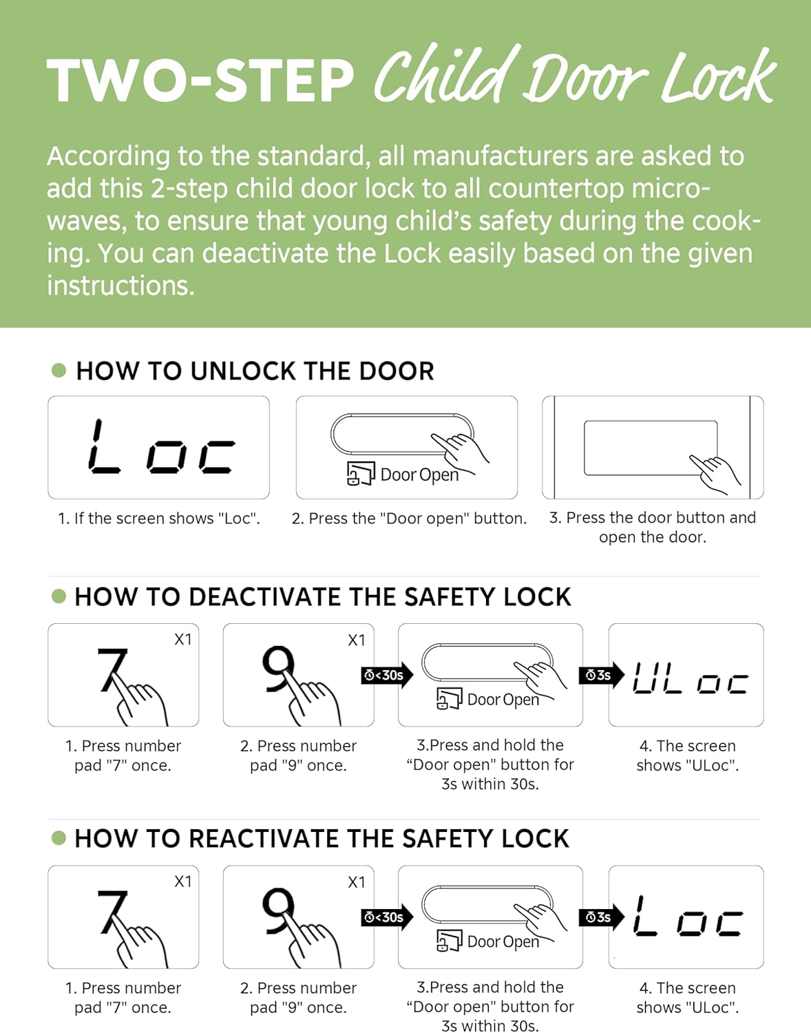 Two-step Child Lock Feature: To protect the younger and prevent misuse, all manufacturers are asked to follow the new safety standard and add this 2-step child lock function.