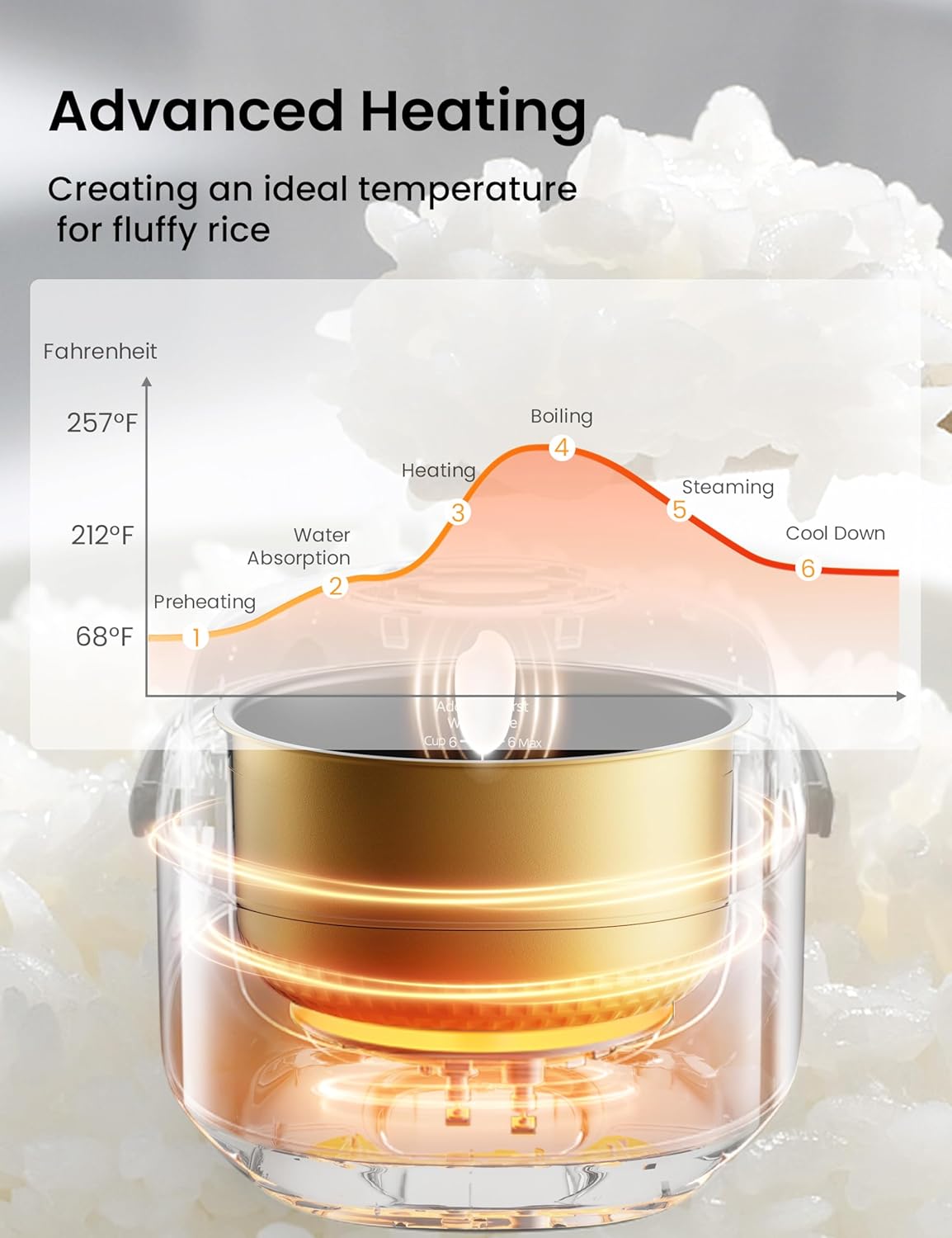 6 Cups Capacity: This compact rice cooker can cook up to 6 cups of uncooked rice (12 cups cooked), perfect for families. The portable size and convenient handle, make it easy to store , and also convenient to take out camping.