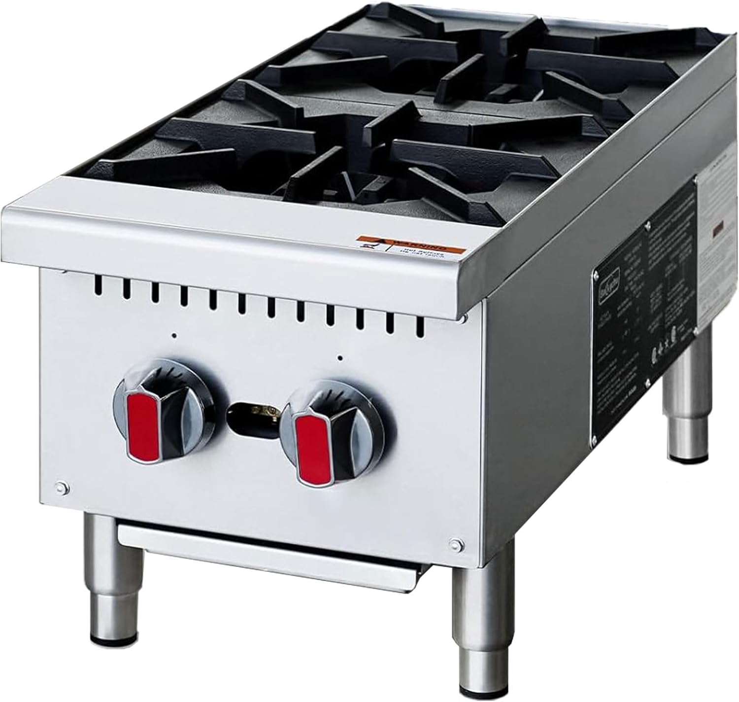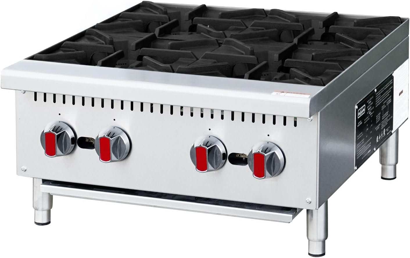 POWERFUL BURNERS: Features 4 independently-controlled 25,000 BTU burners with cast iron grates, delivering consistent heat output for commercial cooking demands