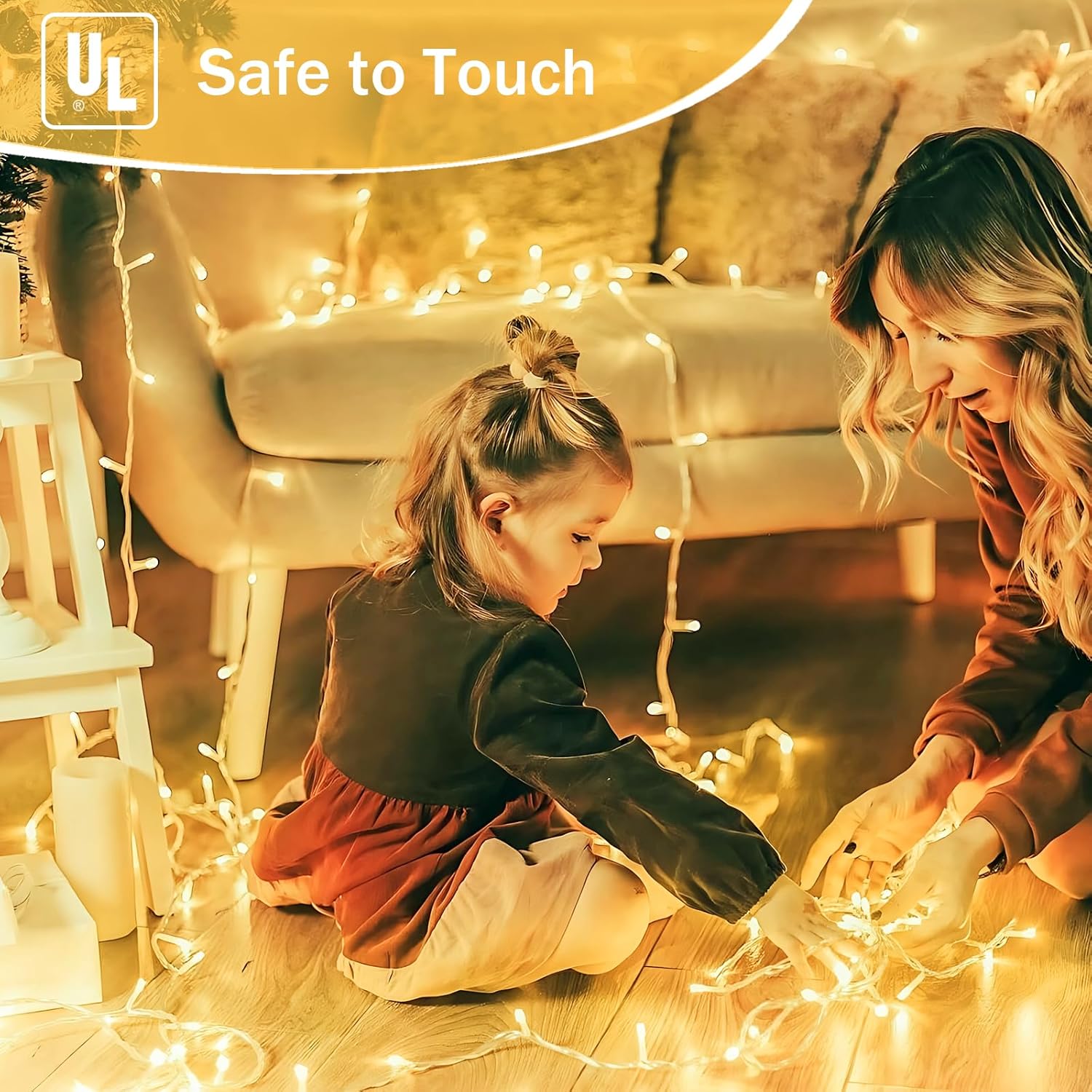 Connectable String Lights Indoor Outdoor: These 66ft Christmas lights feature 200 warm white LEDs and offer a timer, memory function, waterproof construction, 13 lighting modes, and a connectable design. The fairy lights emit a warm, inviting glow, creating the perfect atmosphere for Christmas, weddings, dates, or everyday decorations. Effortlessly connect multiple strands to cover larger areas in rooms, gardens, and so on. Wrap your world in a soft, romantic radiance!