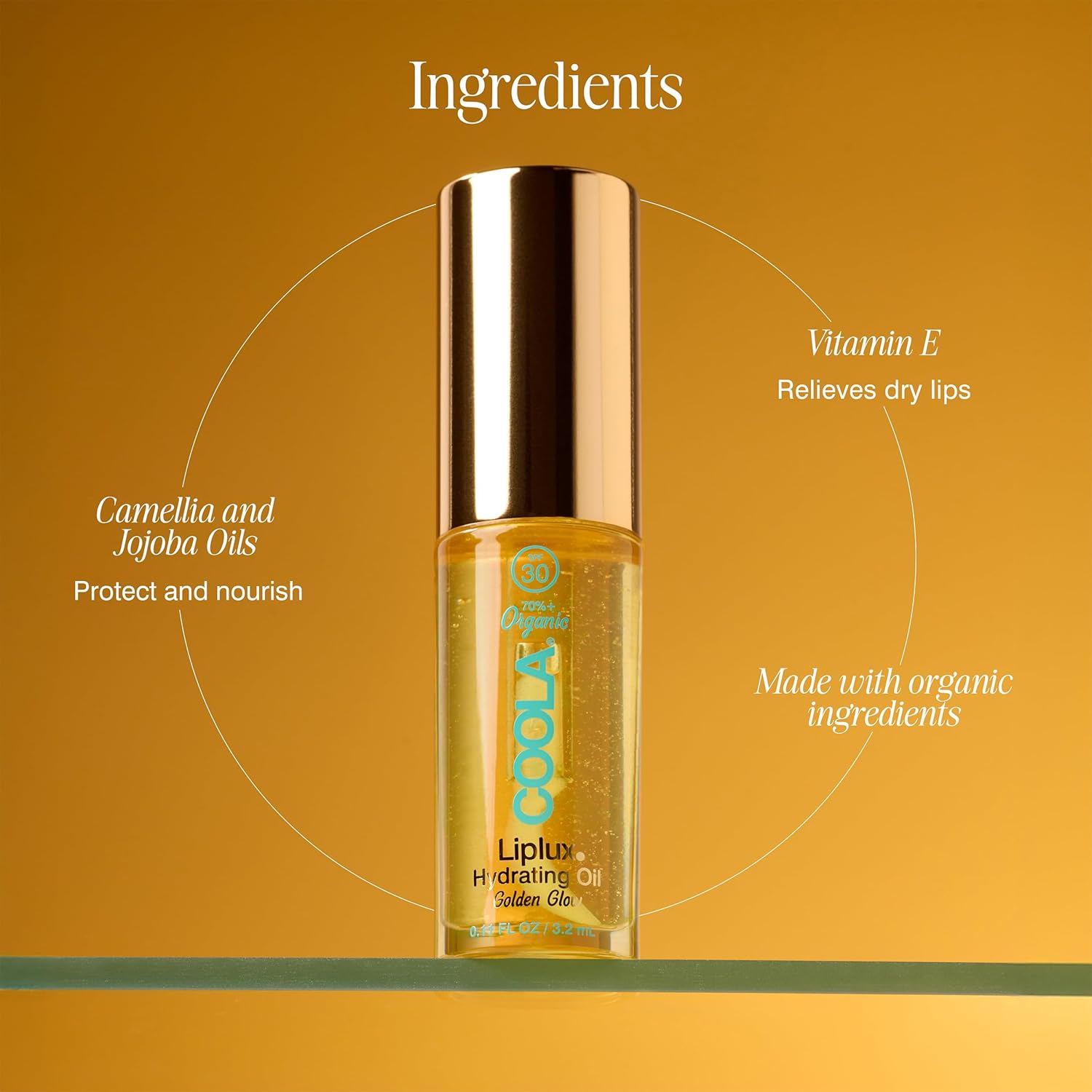 70%+ certified organic ingredients Broad Spectrum SPF 30 UVA/UVB protection Provides the hydration of a lip oil with the shine of a gloss Camellia and Jojoba Oils aid in protecting and nourishing lips Vitamin E helps relieve dry lips