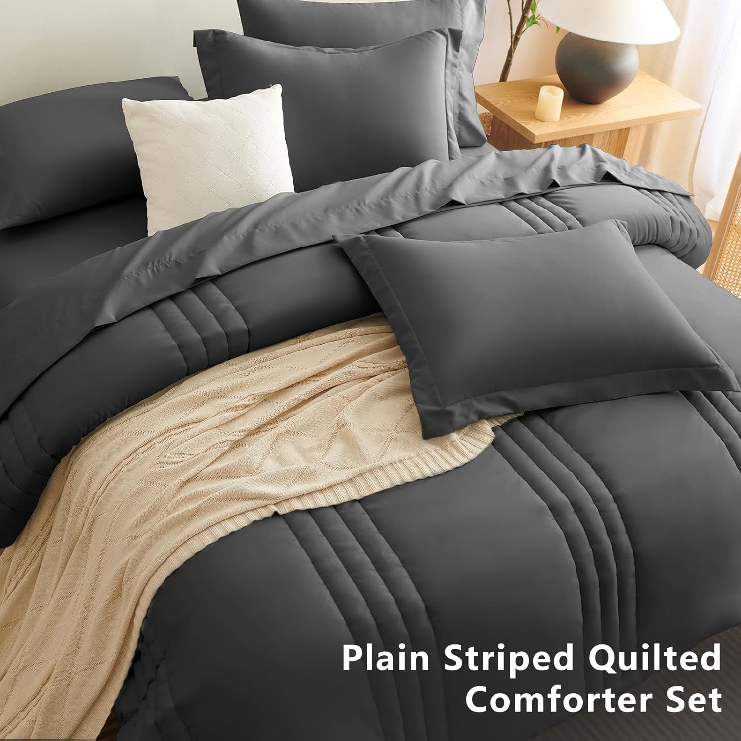 Elegant Design: If you’re someone who loves simplicity and a clean look, our striped comforter bed set is just for you. It comes in a variety of colors, allowing it to seamlessly match different decoration styles. This makes it easy for you to create a harmonious and stylish bedroom environment.
