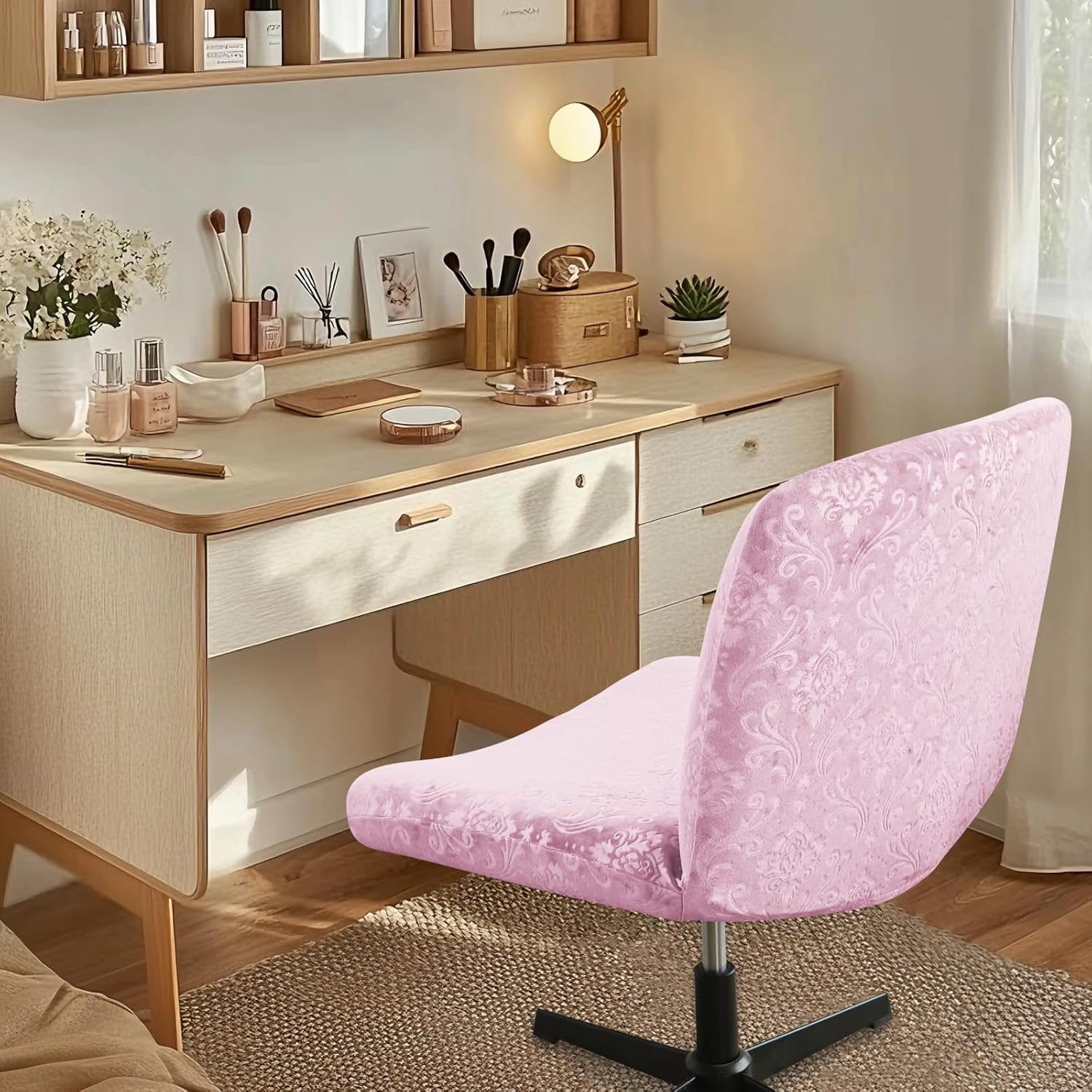 This soft velvet fabric office chair cover with armrest covers features an elastic band and zipper design for a secure, non-slip fit.