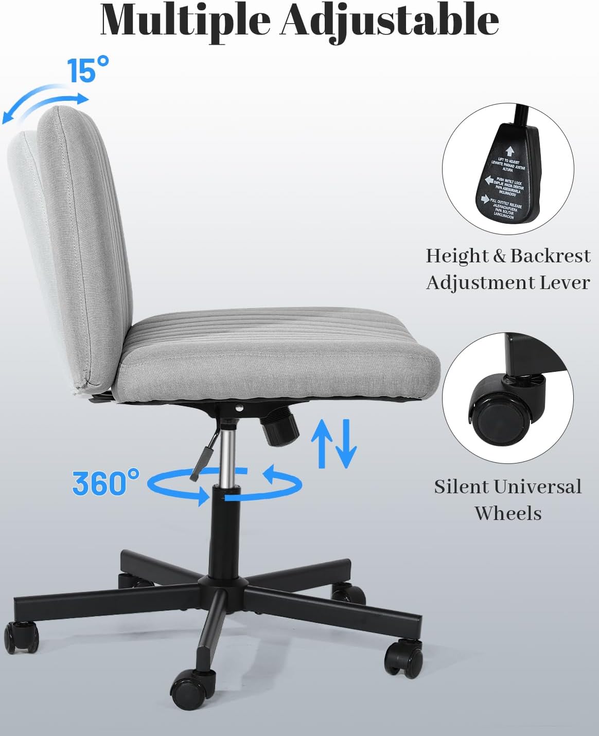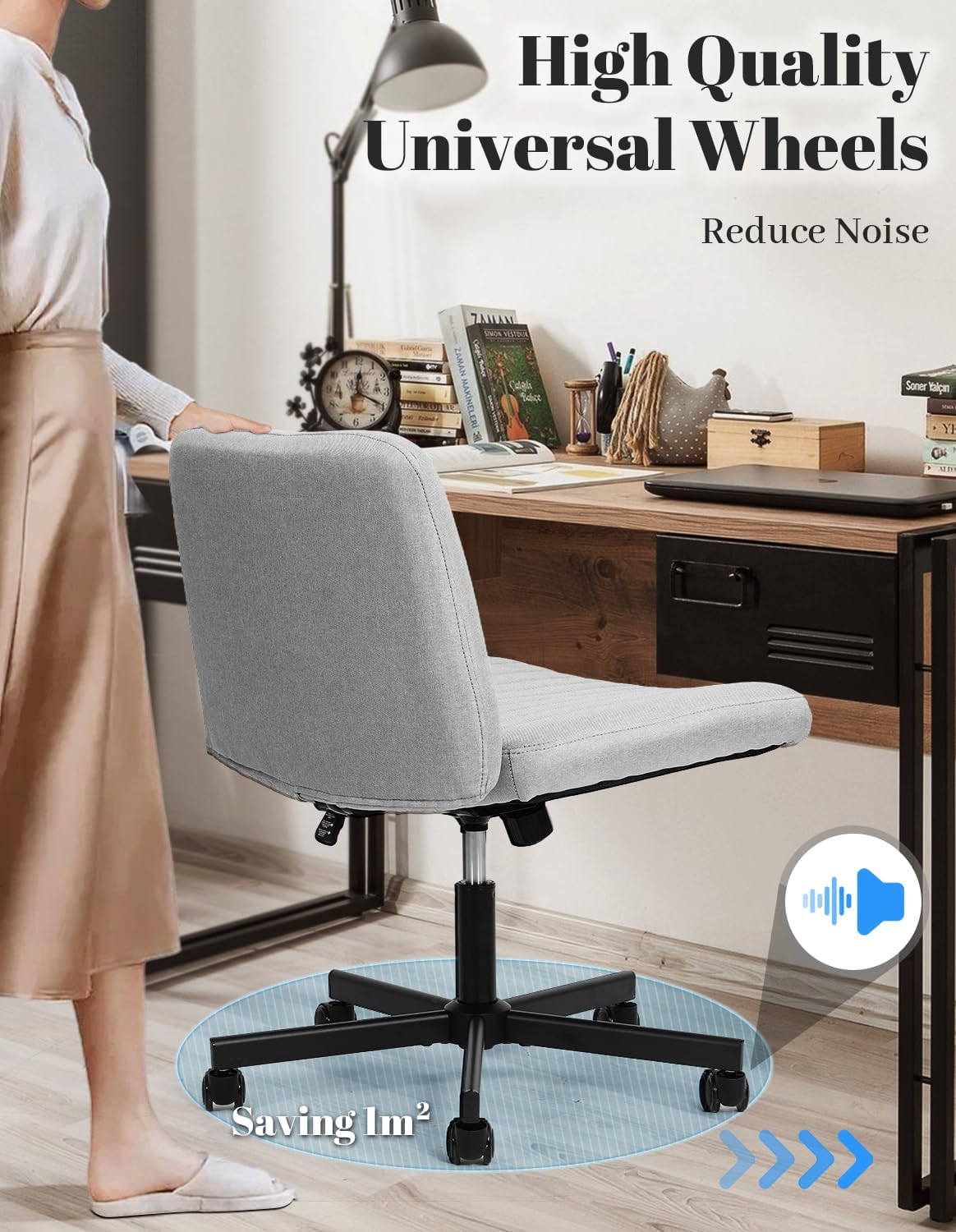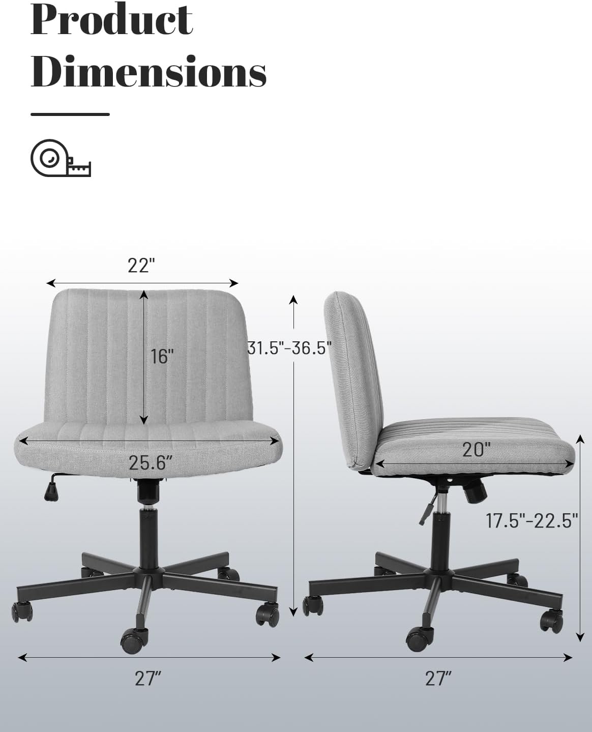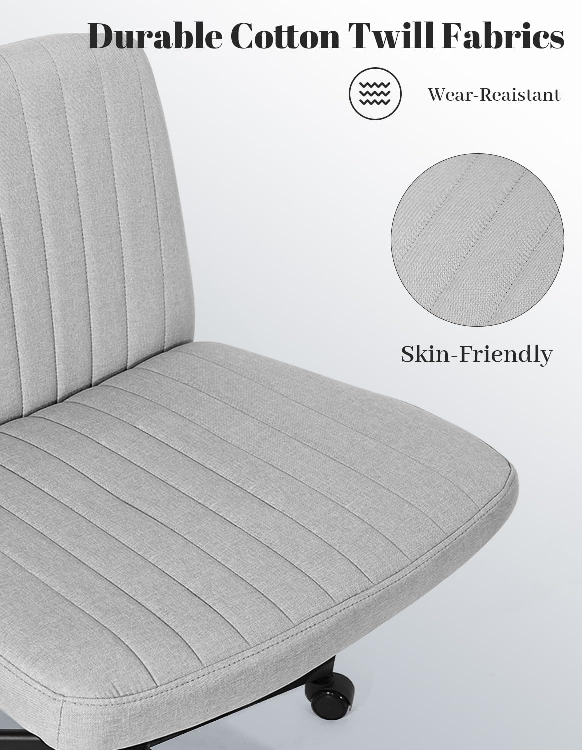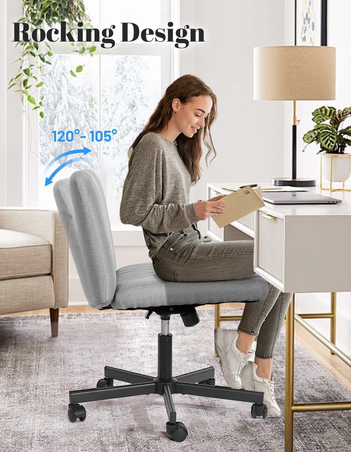 Criss Cross Chair, Extra Wide Armless Rolling Office Desk Chair with Wheels, Plus Size Viral Vanity Legged Chair, Bedroom, Grey