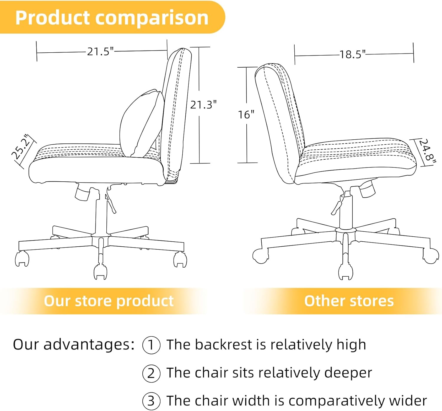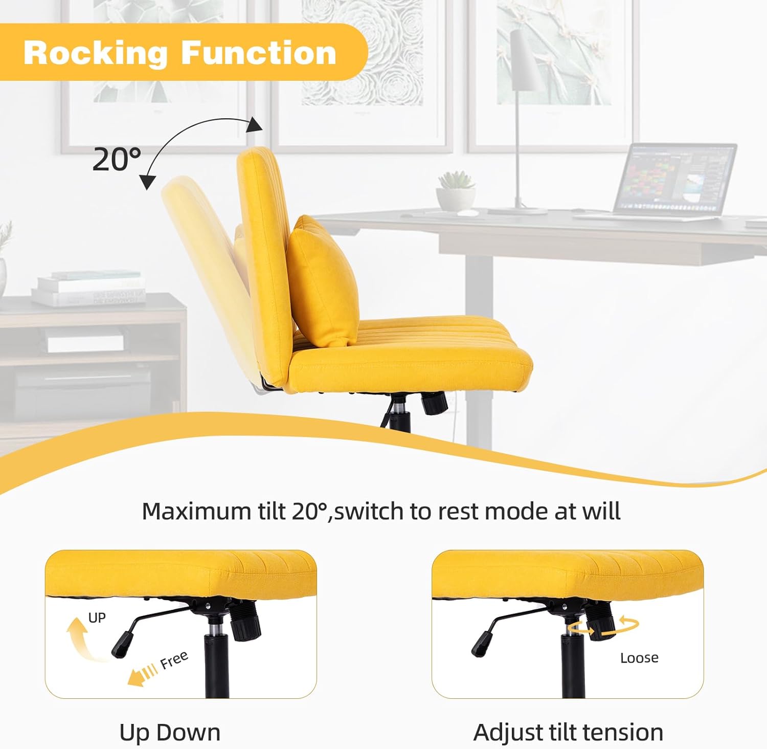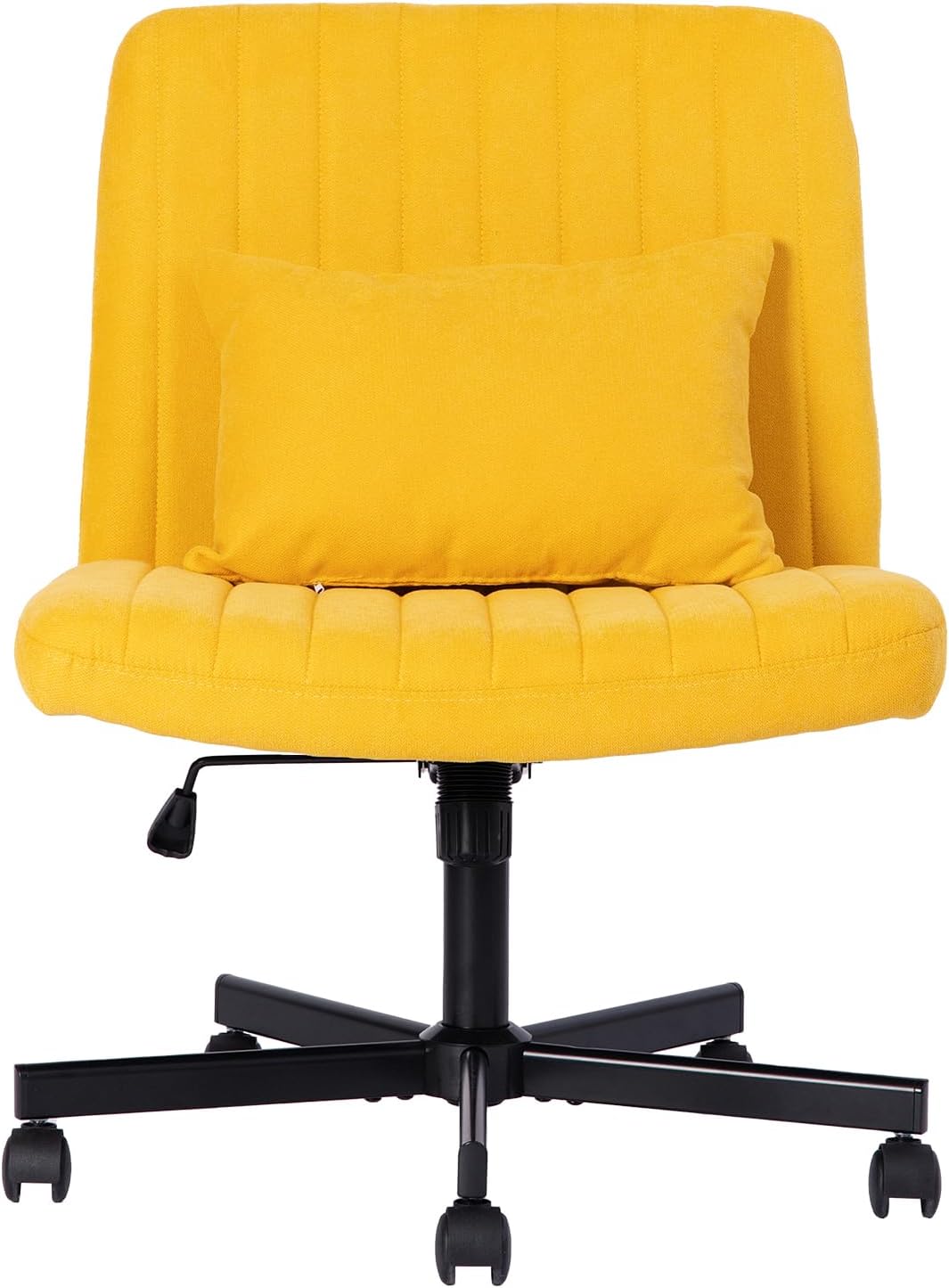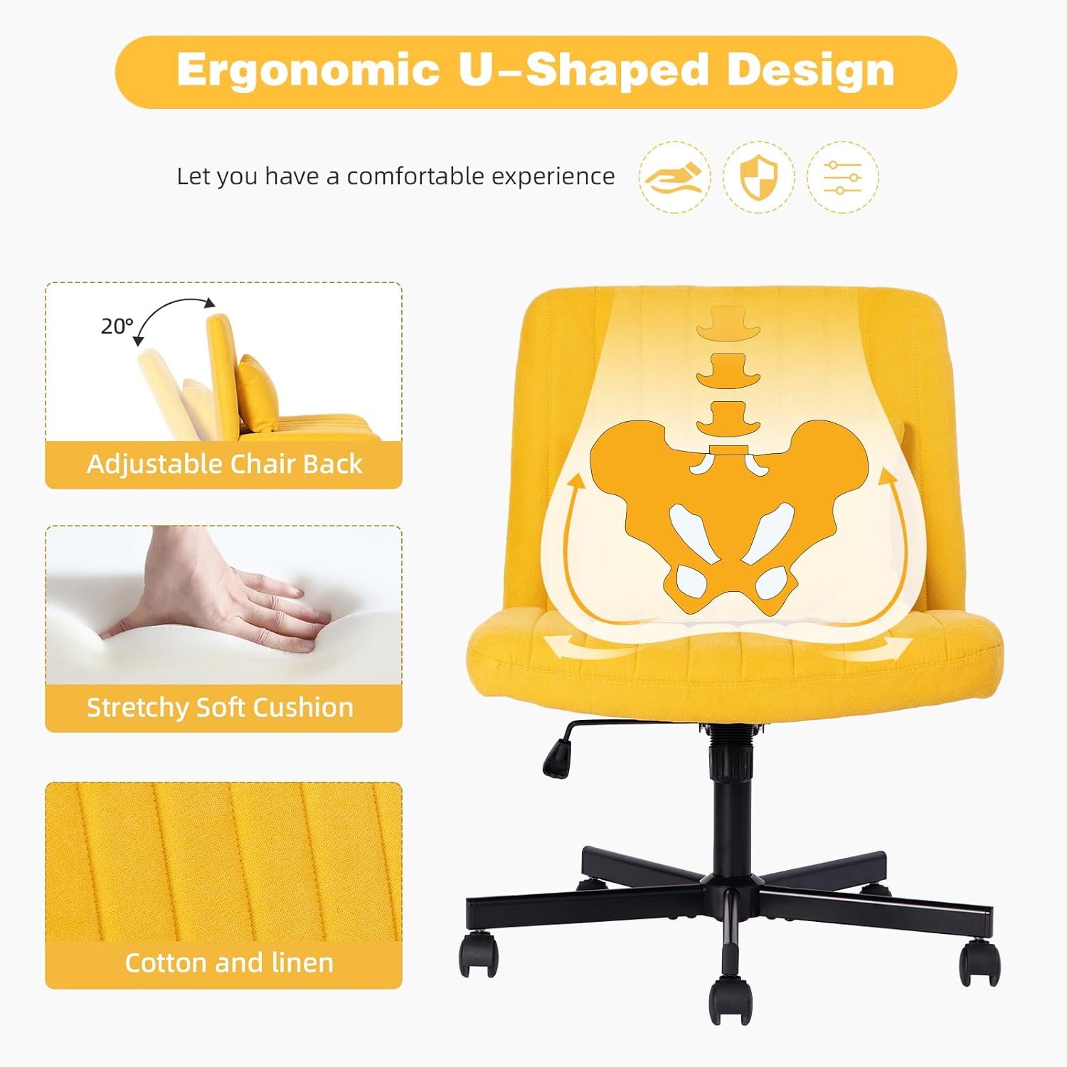 Criss Cross Chair, Office Chair Cross Legged with Wheels, Armless Office Chair, Linen Desk Chairs with Wheels for Home Office, Meditation, Makeup (Linen Yellow)