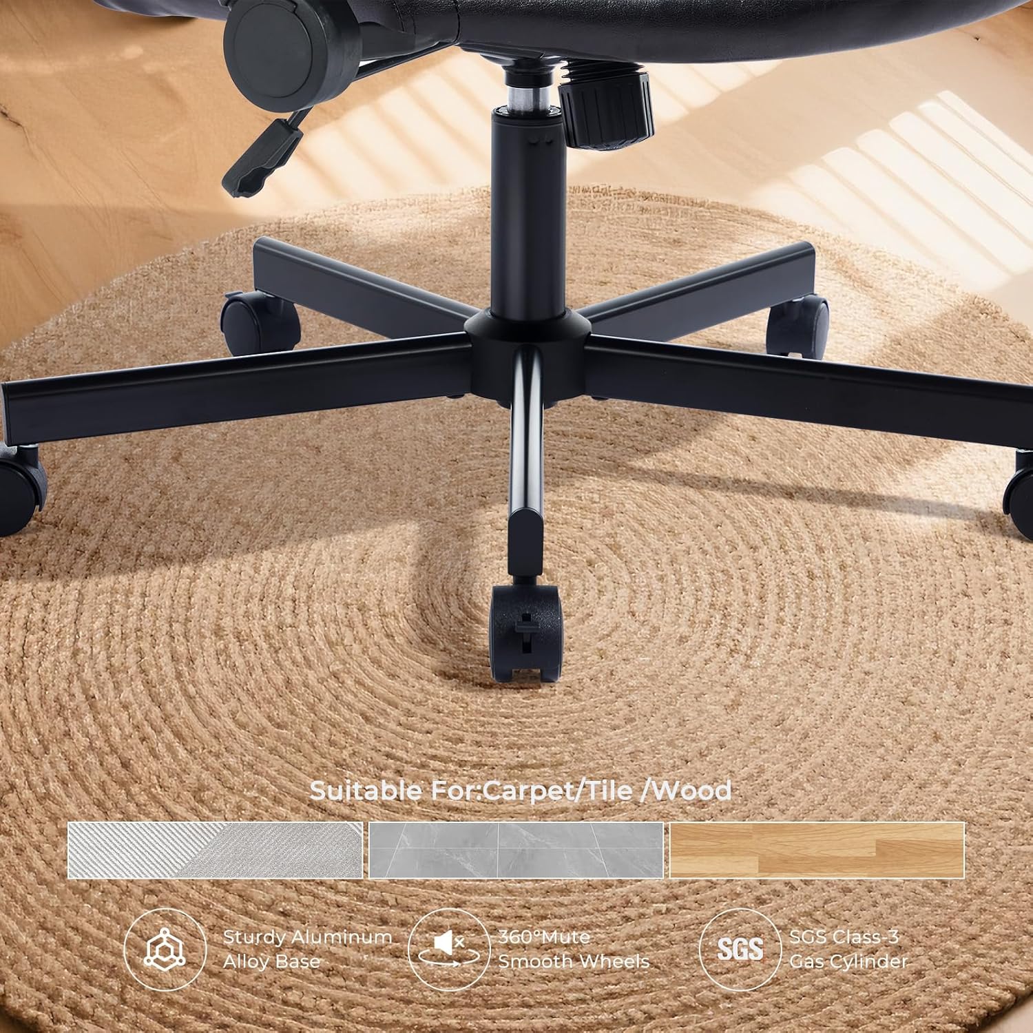 Sturdy and Durable:Reinforced metal base, SGS Level-3 gas lift, and explosion-proof tilt mechanism ensure stability and safety for users up to 330 lbs.