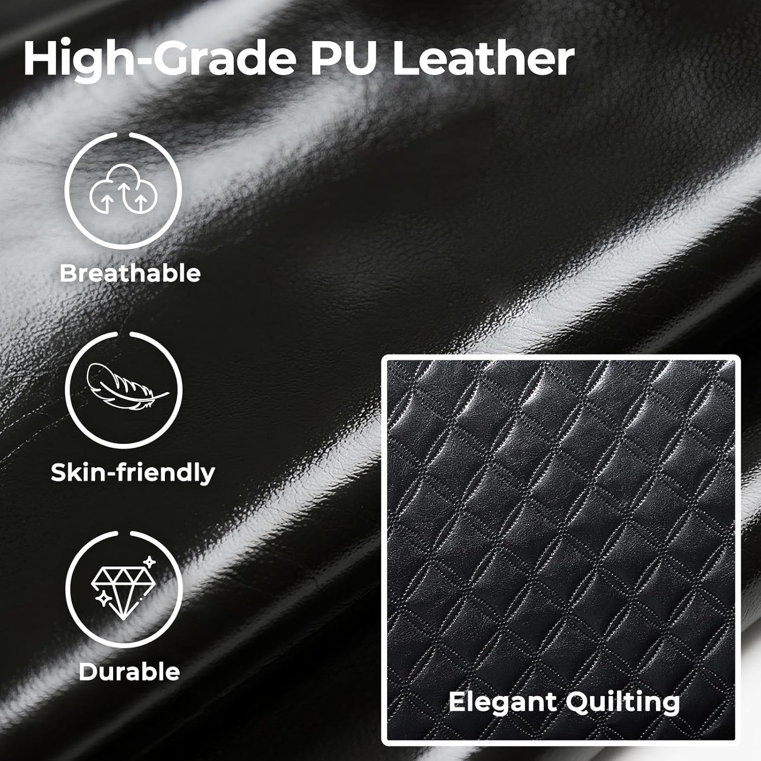 Embossed Leather:The exquisite stitching and embossing add a touch of elegance to the chair, while the high-quality vinyl leather is durable and soft, supple,easy to maintain,breathable and waterproof.