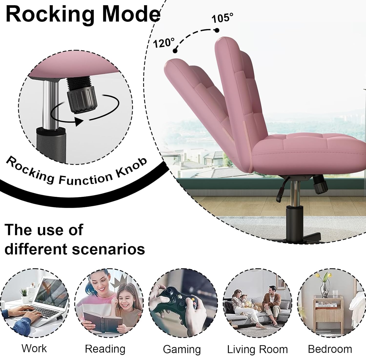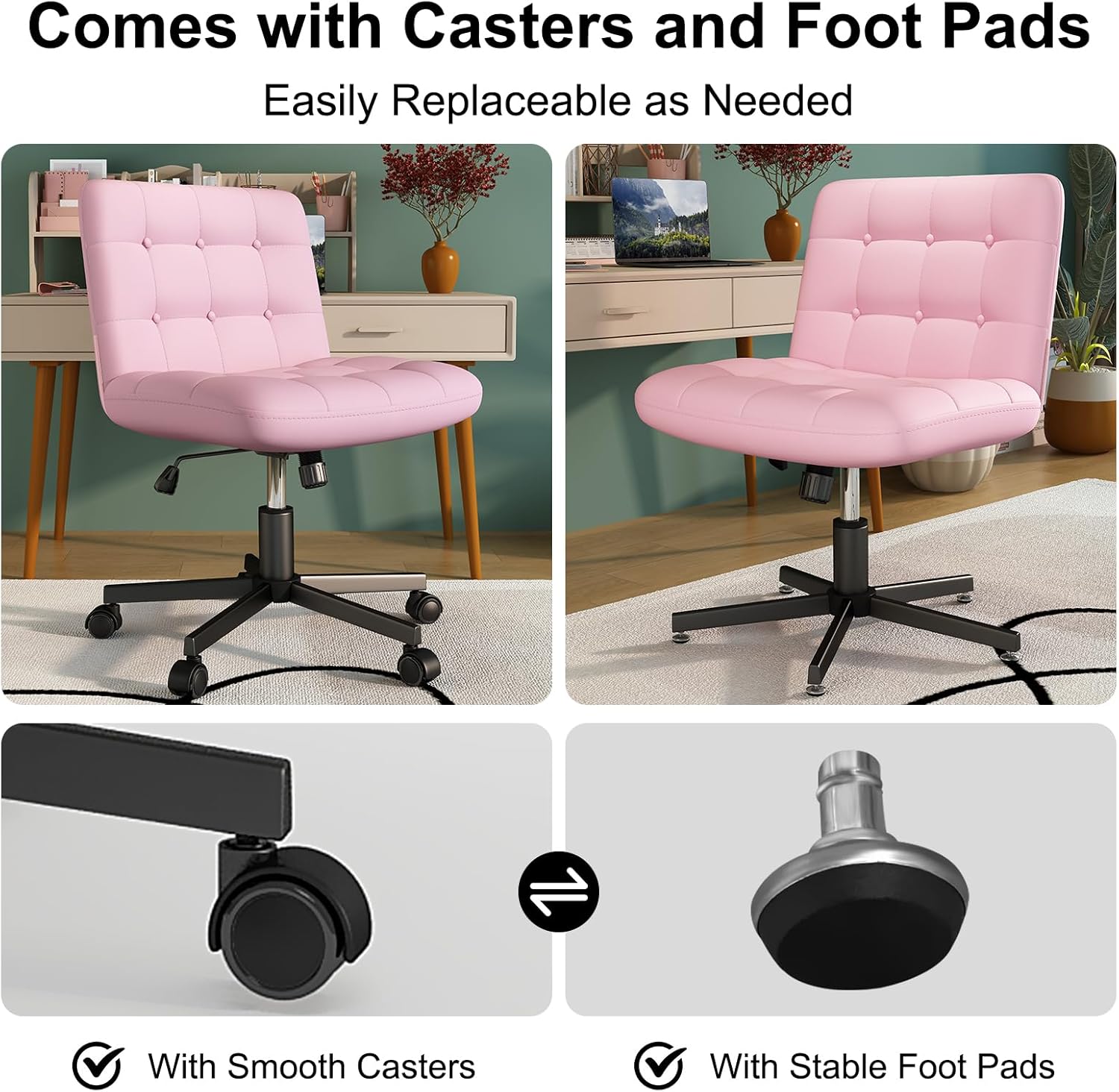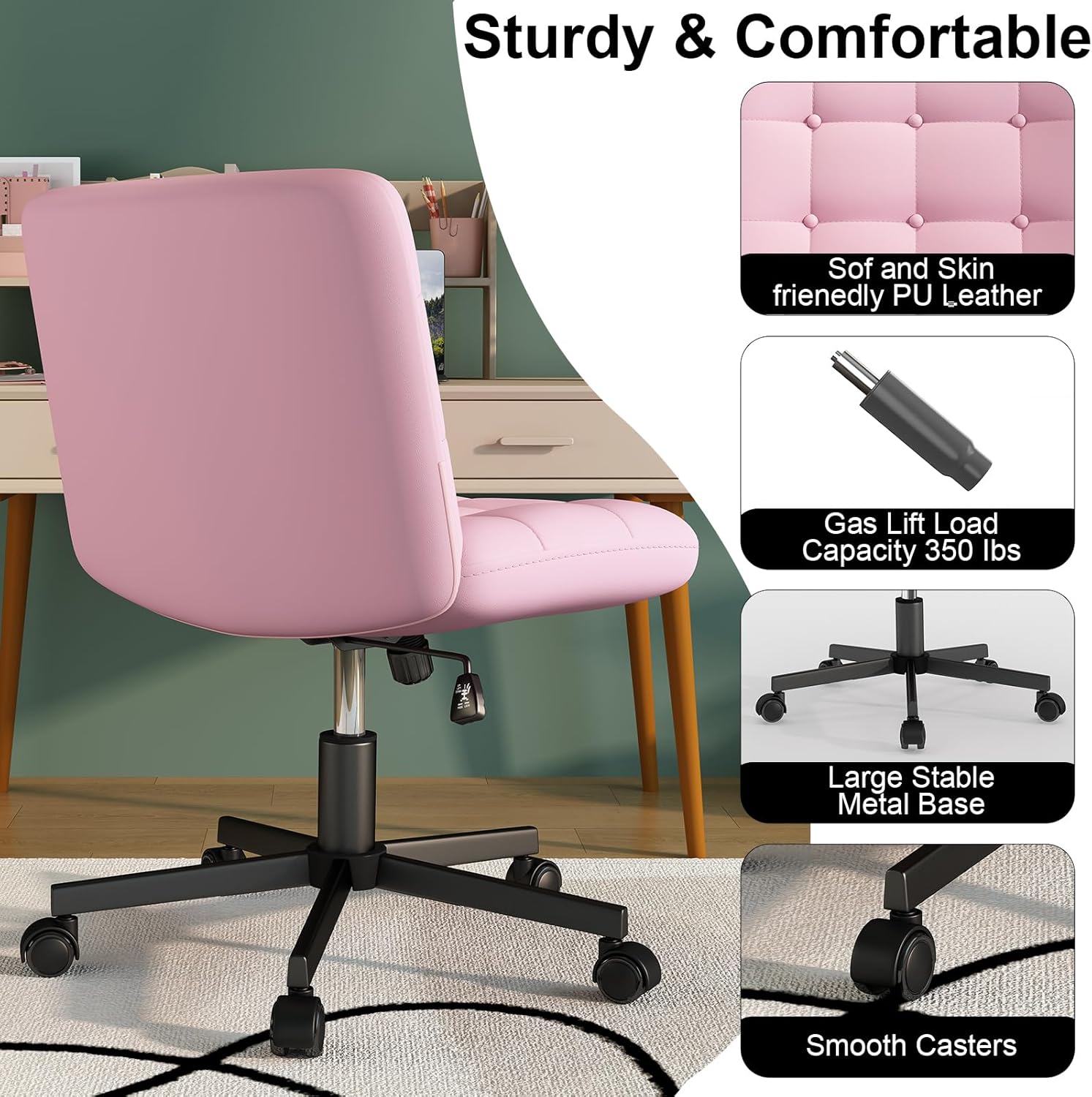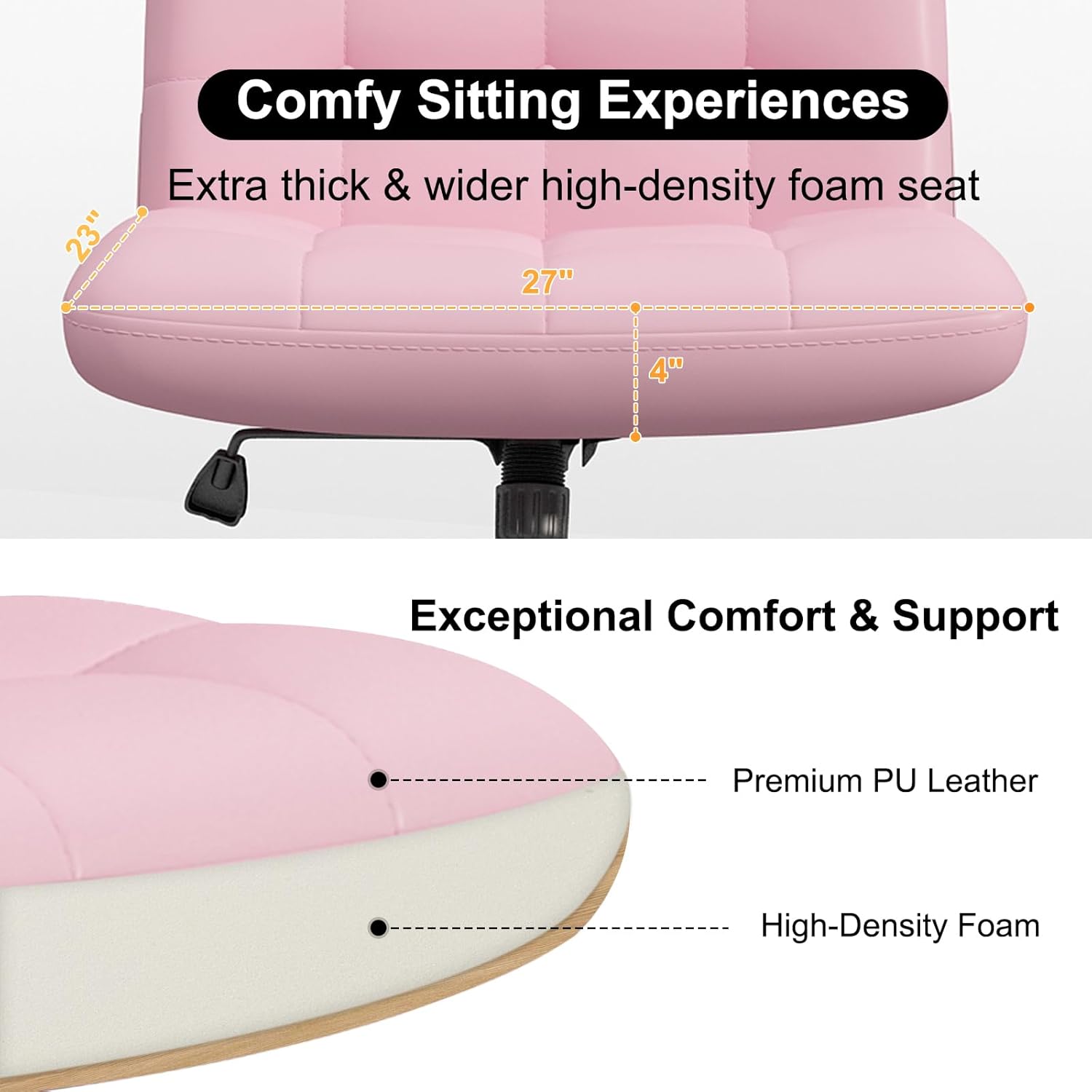 Soft Cushions: The pink armless office chair cushion and backrest are padded with high-density sponge and wrapped in durable PU leather, ensuring long-lasting comfort and resistance to deformation