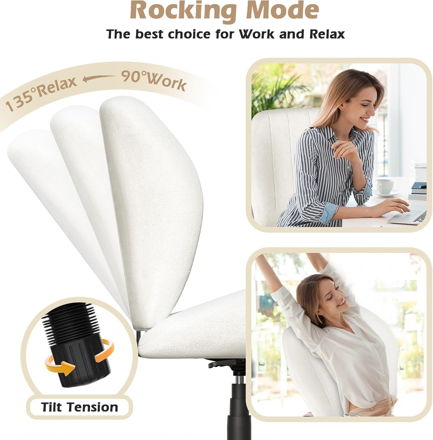 【Affordable & Multi-Function】: Our chair has Multi-function: 4” adjustable height, 360° swivel angle, 90°-135° tilt angle meet different needs. And the modern elegant look can be adapted to bedroom, vanity, office, study and so on