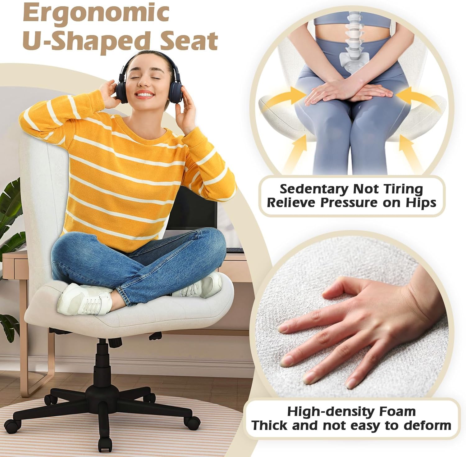 【Release feet with Freedom】: On this chair you can sit cross-legged or curl up. With armless design you don’t need to keep your feet on the floor all the time. It also conforms to the curve of the human spine. It can relieve the fatigue of sedentary