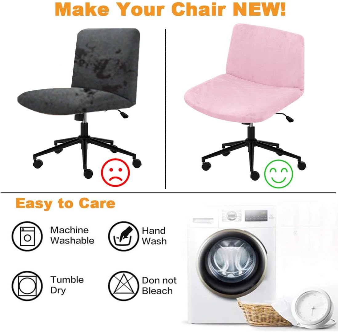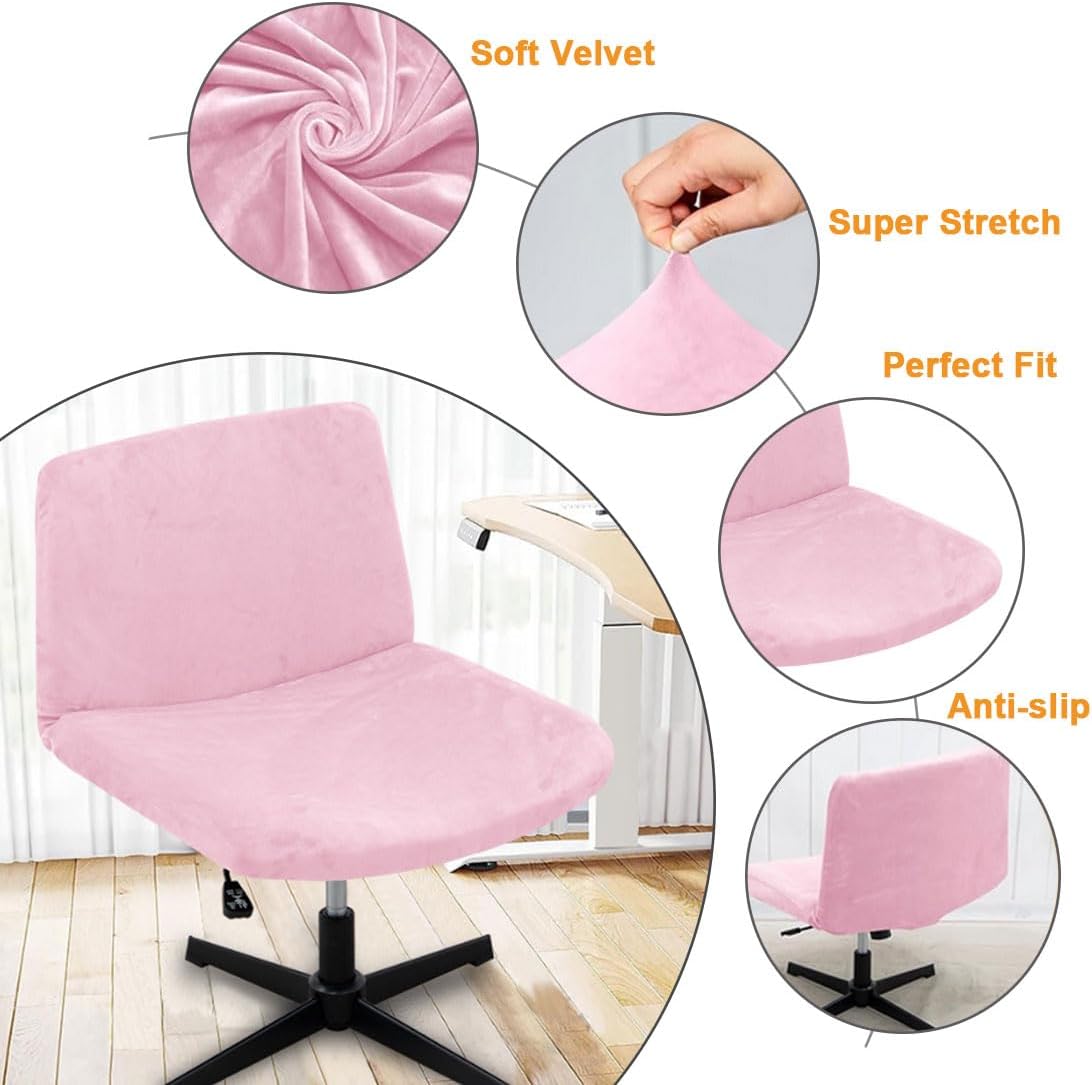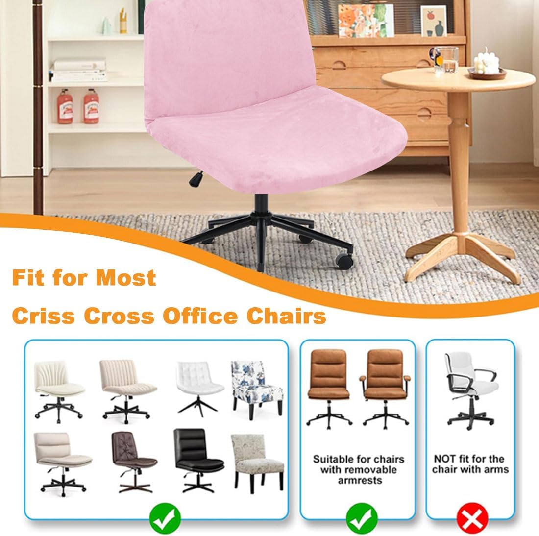 Criss Cross Desk Chair Cover Velvet Armless Office Chair Covers Cross Legged Office Chair Slipcovers Modern Mid Back Accent Chair Cover Vanity Swivel Chair Protector Pink 1 Pack