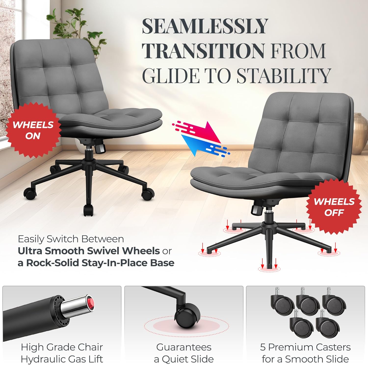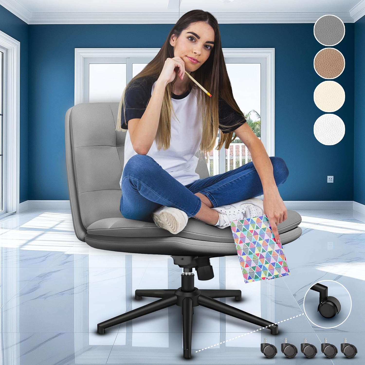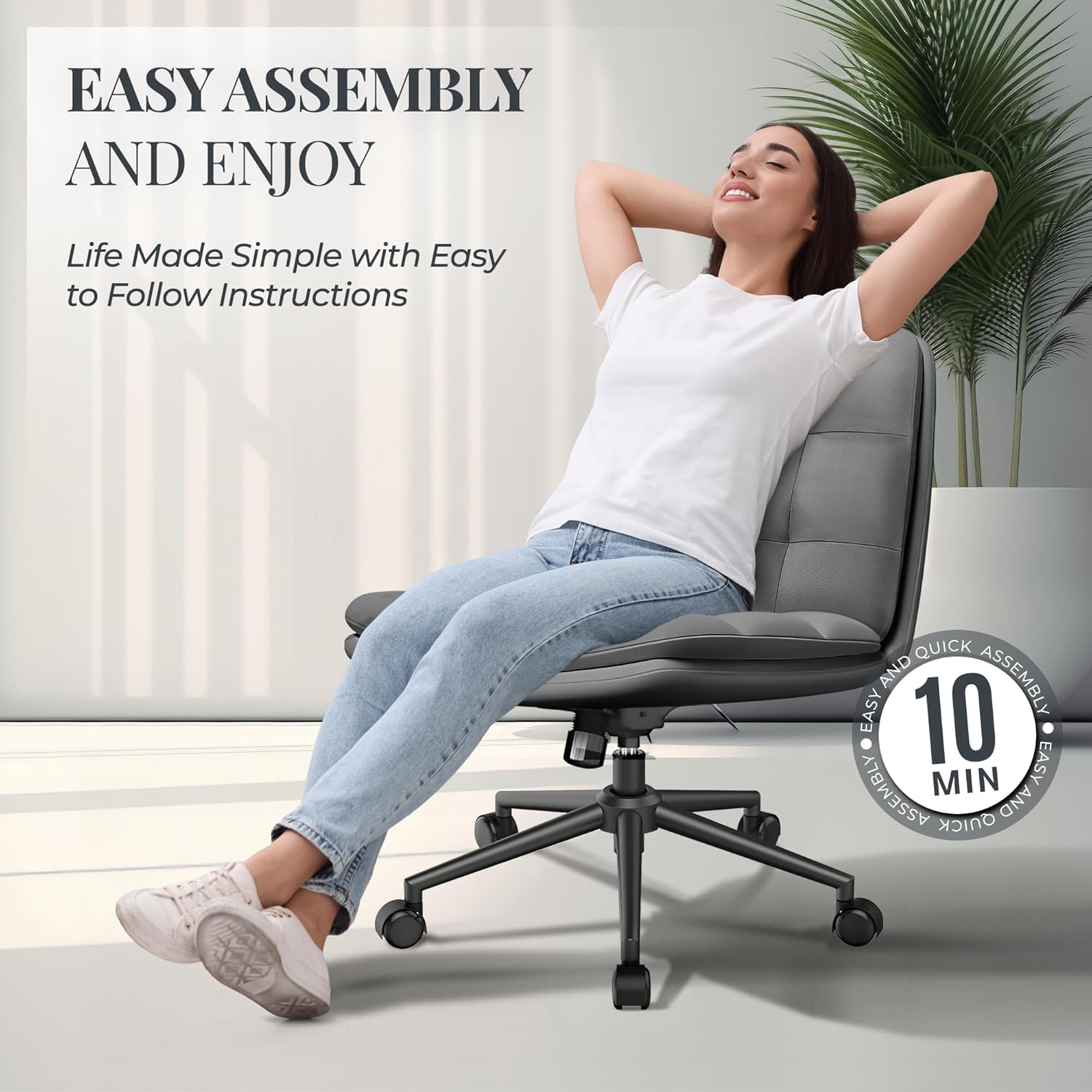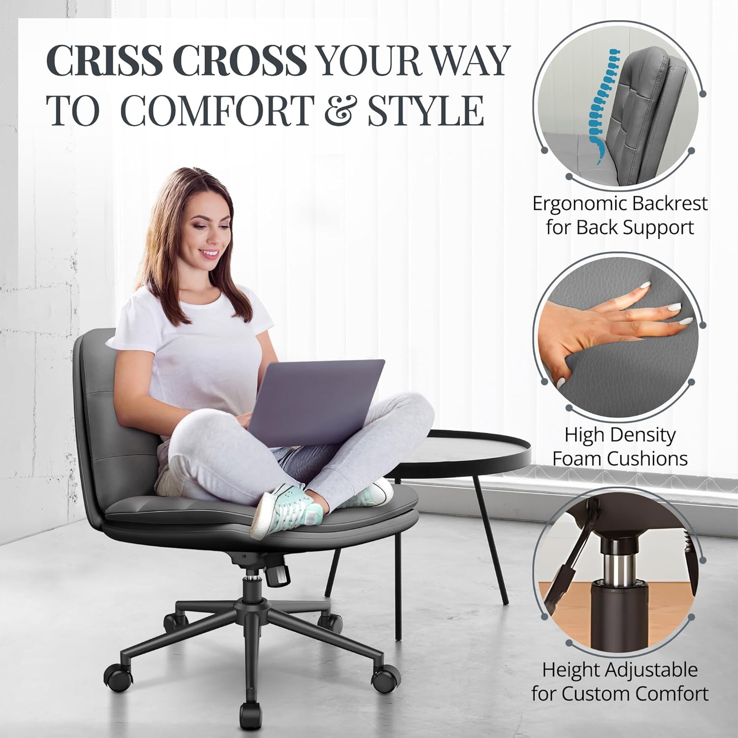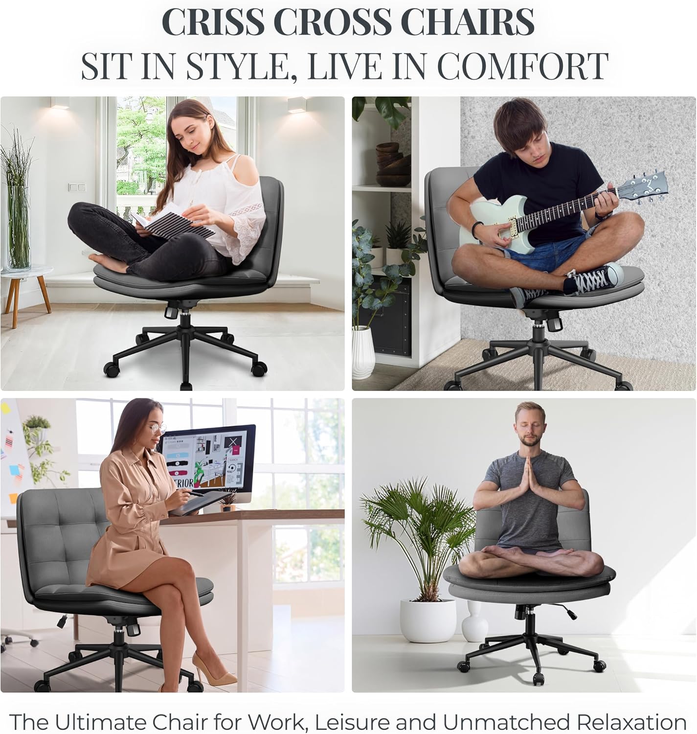 DURABILITY GUARANTEED – With a robust desk chair criss cross legs, our wide armless criss cross chair supports ample weight, catering inclusively to plus size individuals. Our cross legged office chair offers exceptional comfort, ideal for long hours of work or relaxation for all