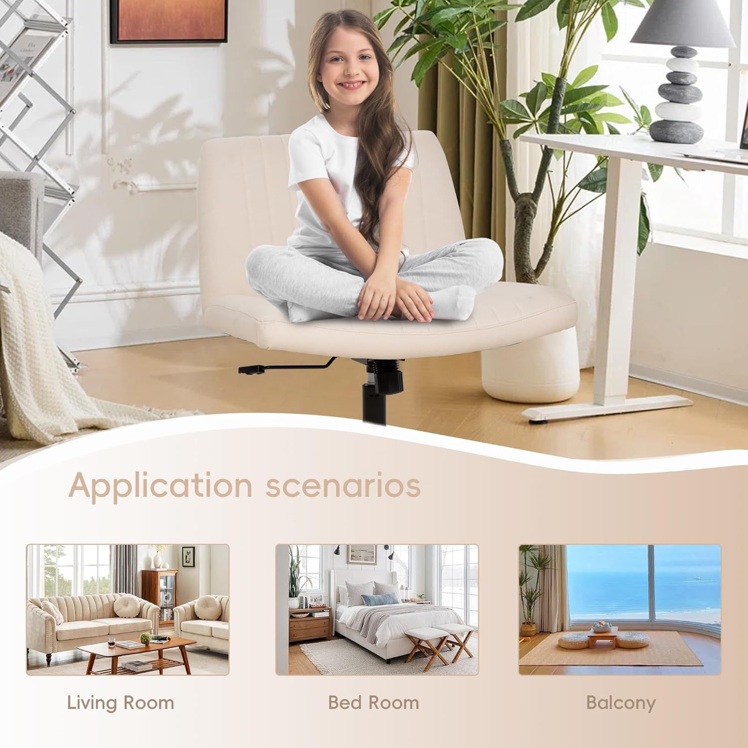 【Larger & Thicker Cushion】The backrest and seat of the comfortable desk chair are made of high-quality materials and high-elastic sponge padding, allowing you to enjoy a comfortable sitting experience for a long time. The seat size of the desk chair no arms crisscross chair is 19.5 inches x 26.3 inches, giving you more room to sit cross-legged or curl up in the chair. The U-shaped design of the office chair for women gradually relieves pressure on the back and hips from the center to the side.
