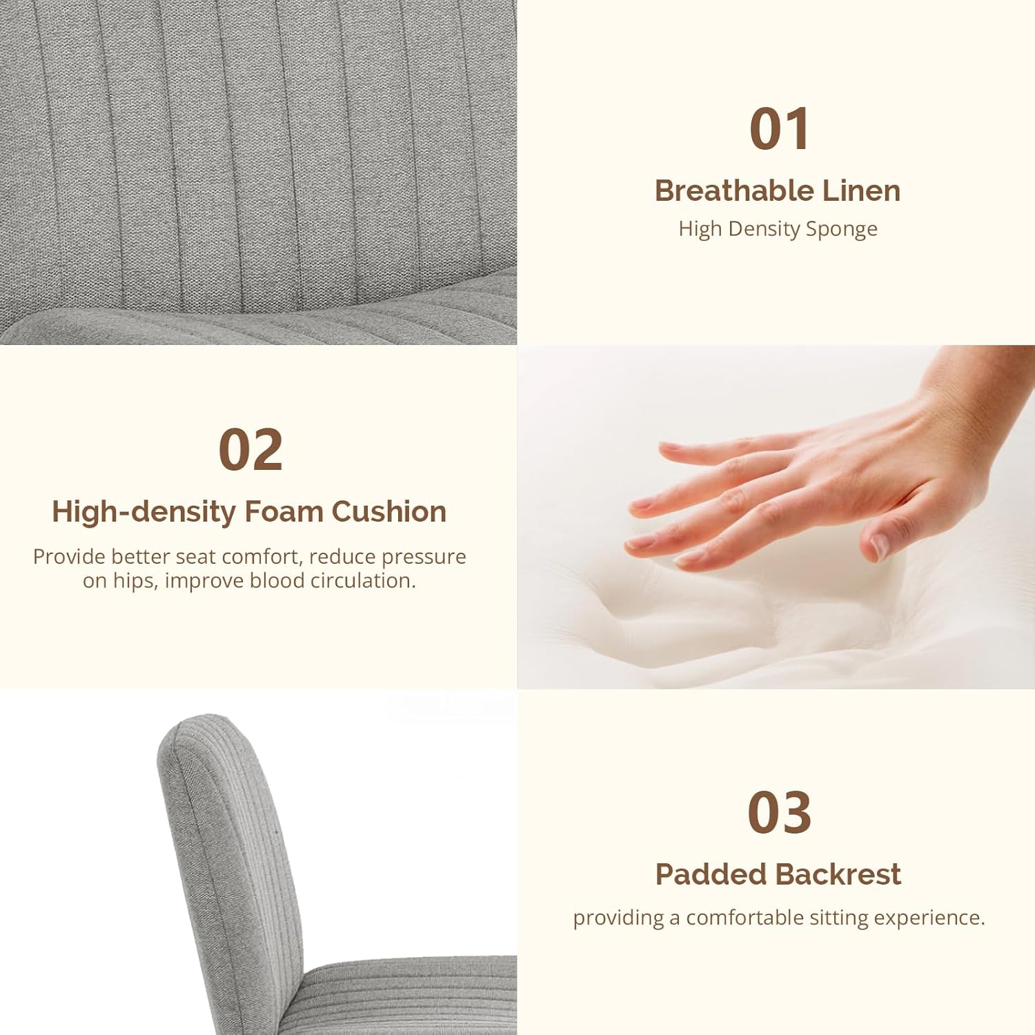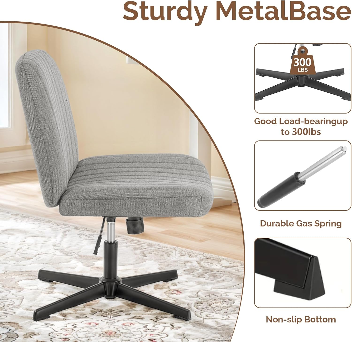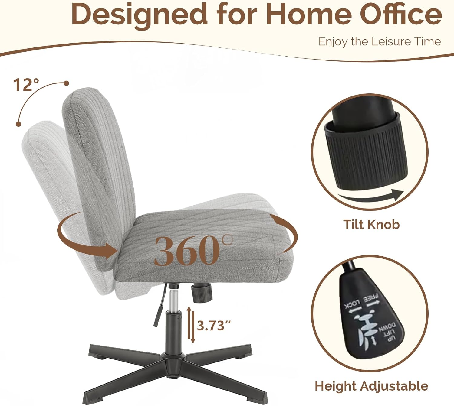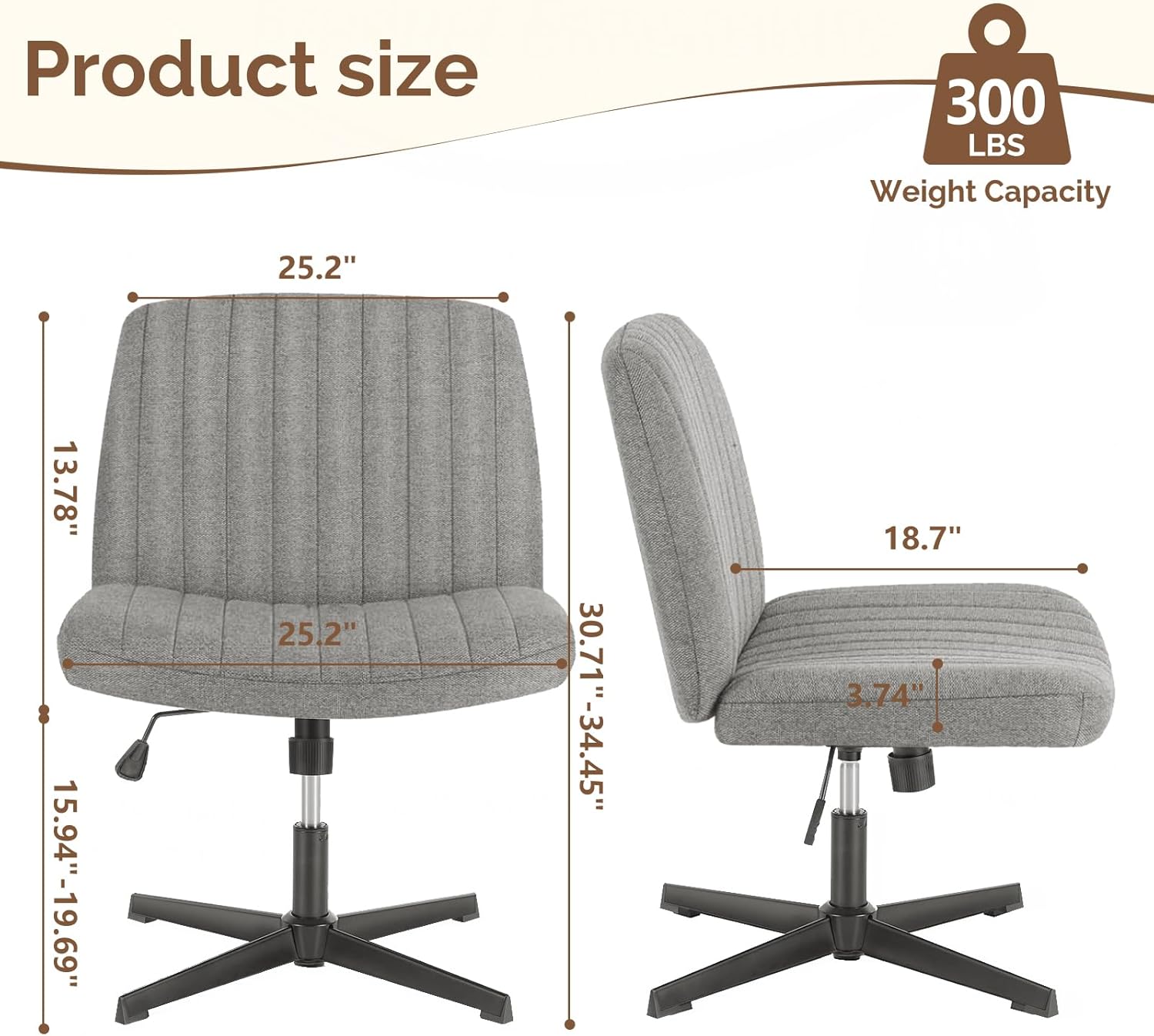 Criss Cross Legged Chair, Ergonomic Computer Desk Swivel Seating Comfy Wide Fabric Seat No Wheels Armless Height Adjustable for Home Office, Study, Vanity, Gray