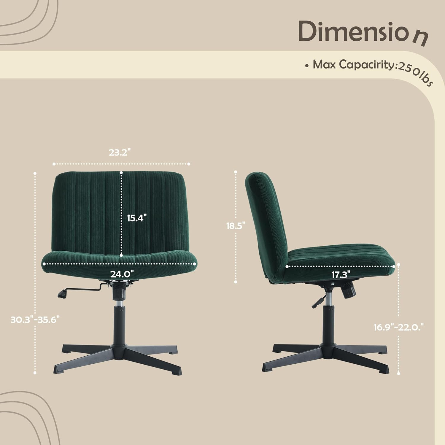 【Armless Desk Chair no Wheels】: Crafted with precision, this cross legged office chair boasts a sturdy cross-shaped aluminum base, and each support leg is equipped with non-slip natural rubber pads.This home office chair exudes a minimalist charm, optimizing space utilization. Its sleek design seamlessly fits into any environment, home office, bedroom, living room