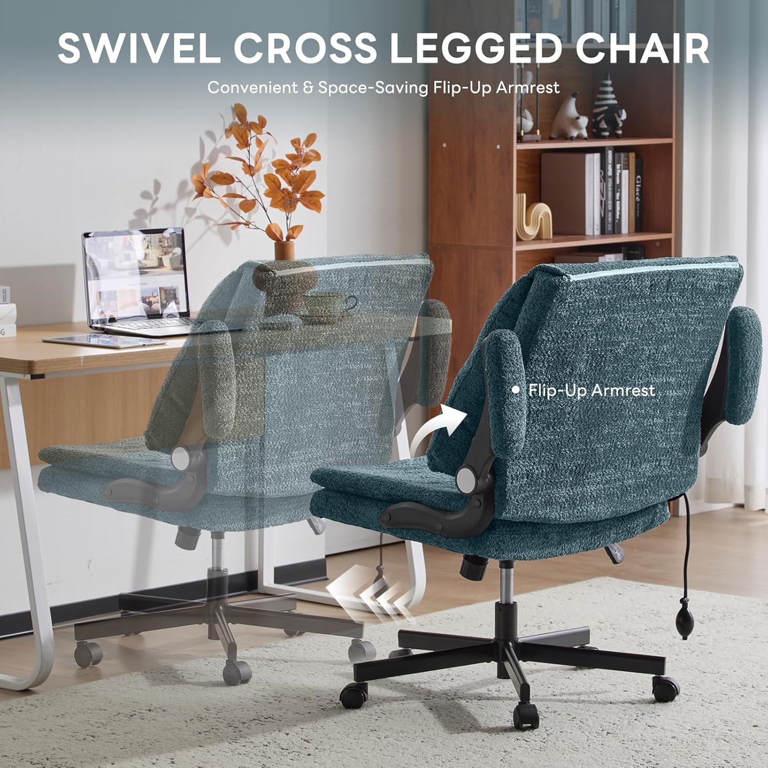 Criss Cross Legged Office Chair with Flip-Up Back (Dark Green)