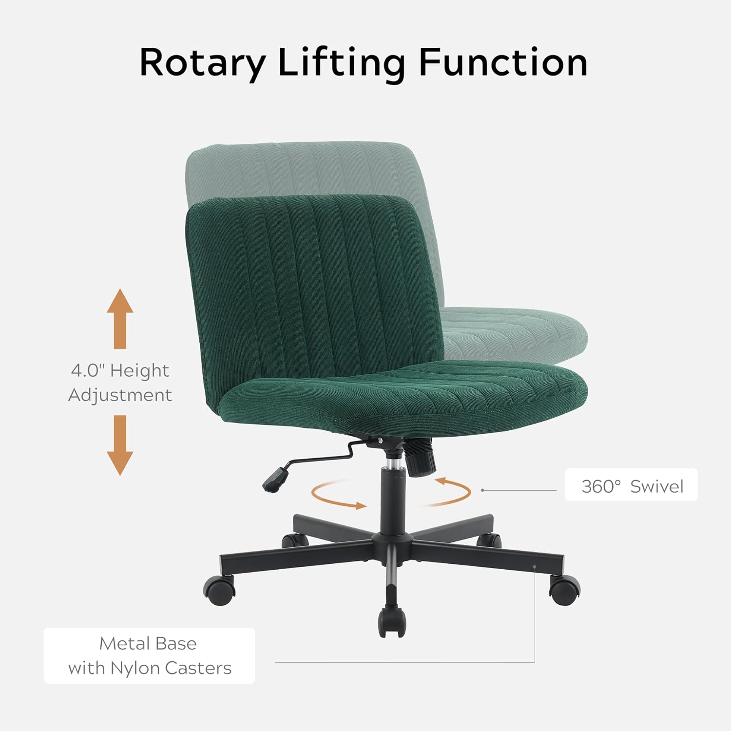 Wider Seat & Heavy Duty Base: Our wide seat office chair is designed for flexibility with large for easy mobility, making your work easier. You can comfortably sit cross-legged or curled up in the chair. It can smoothly and silently rolling on variety kinds of floor. The metal base of this cross legged makeup chair has a weight capacity of up to 300 lbs, ensuring stability and reliable support during use