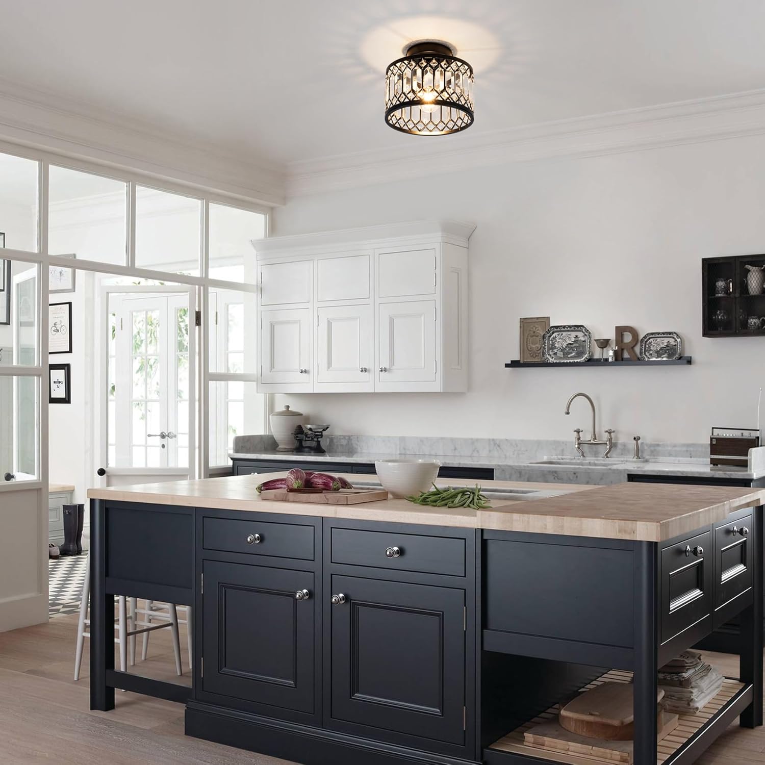 【Wide Application】This Crystal light fixture flush mount Diameter:9.05in,the base diameter is 4.72in,Height:7.08in.These Hallway light fixture ceiling are in small size that won’t take much space, which will also be an ideal choice for space with lower ceiling and can be put in any place as you want such as living room, dining room, hallway, foyer, kitchen, bedroom, entryway, porch etc. This Kitchen Light Fixture ceiling Mount will also be a great gift for family and friends in various occasions such as house warming