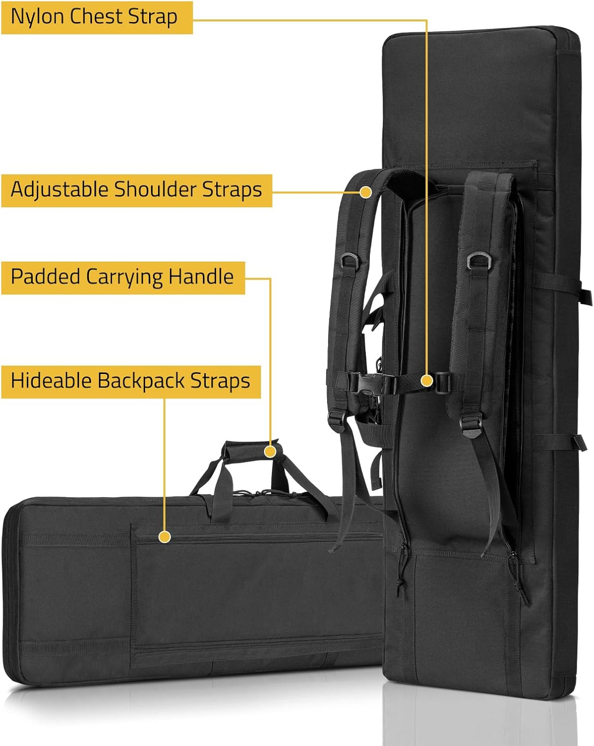 Well Made: The exterior and interior lining of our soft rifle case are made of heavy duty industrial 600D PVC nylon, which is water resistant and dust proof