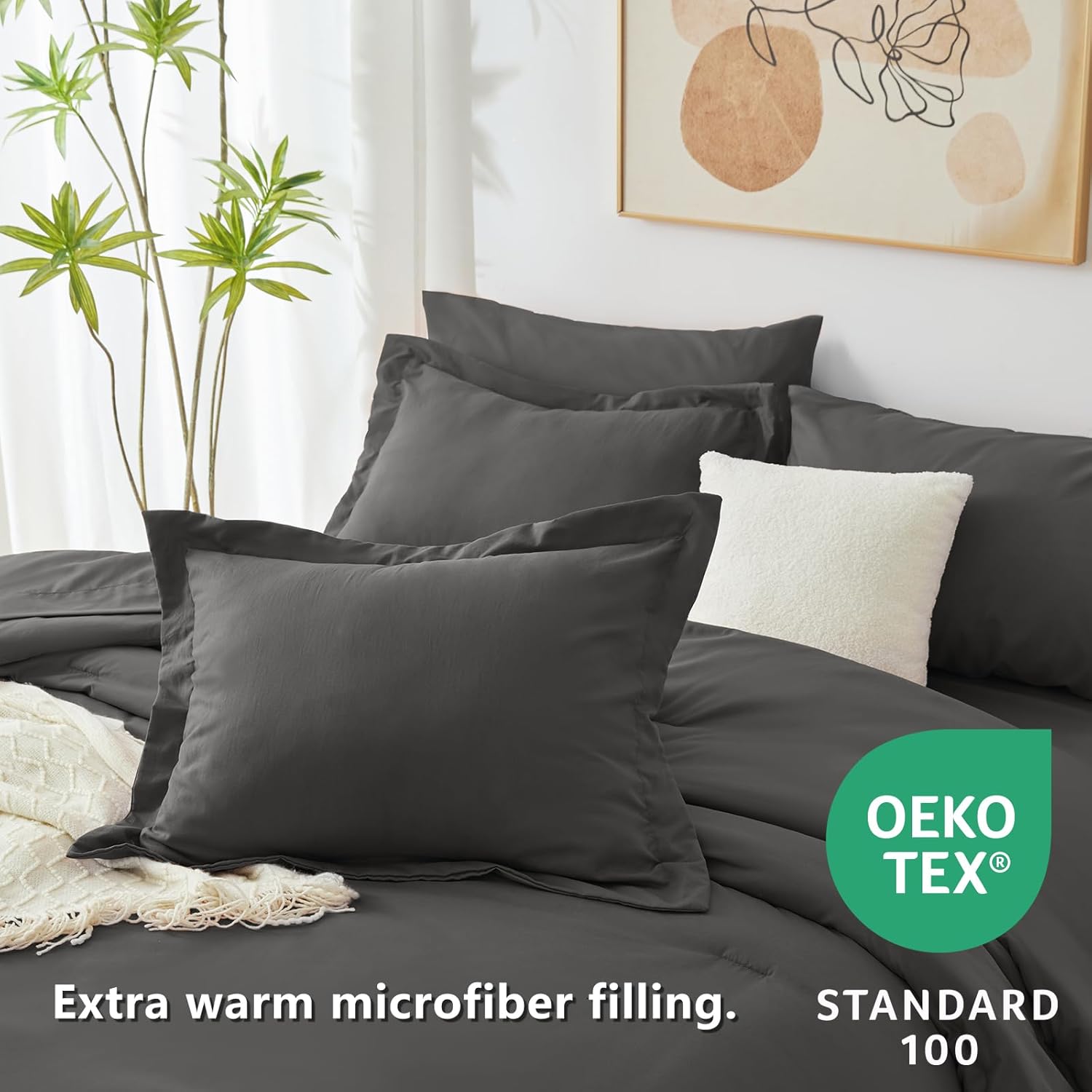 Easy Care:This bed set is durable and easy to maintain, with even dense stitching and machine washability for long-lasting use.Since the comforter comes in vacuum-sealed packaging, it is highly recommended to wash it and tumble dry low temperature to puff the comforter before first use. Or you can expose it to sunlight and tap gently, then it will re-fluffed nicely after hours.
