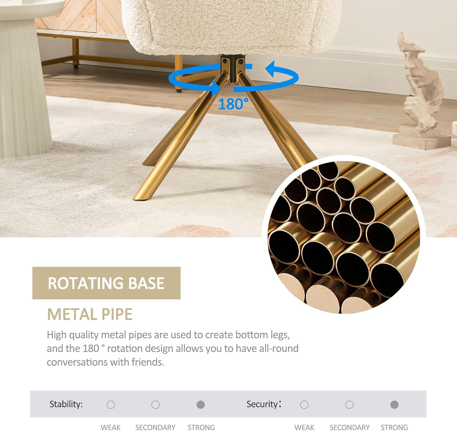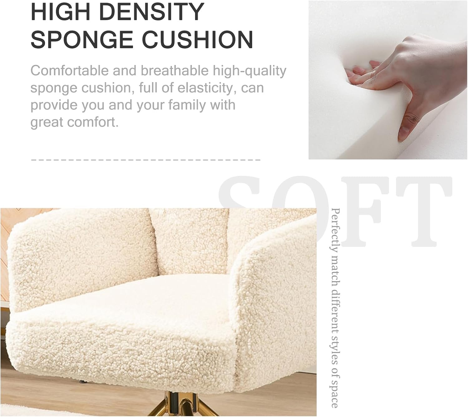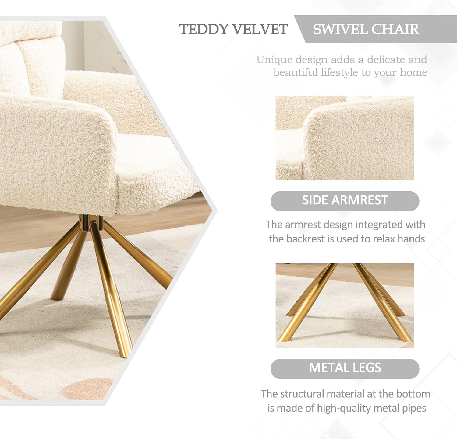 Desk Chair No Wheels 180°Swivel,Makeup Vanity Chair with Gold Legs,Ergonomic Criss Cross Chairs for Bedroom,Living Room,Home Office – Beige